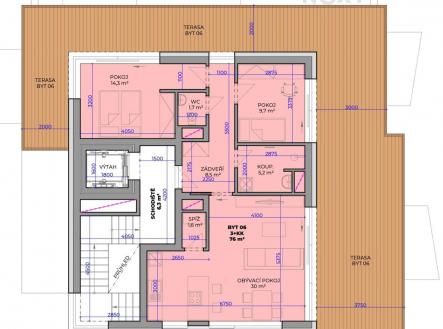 Prodej luxusního střešního bytu 3+kk s terasou – Fryšták, ul. Osvobození V Nabízíme k prodeji výjimečný střešní byt o dispozici 3+kk v moderním developerském projektu ve Fryštáku – lokalita Potoky, ulice Osvobození V. Jedná se o jednotku B06. Byt o podlahové ploše cca 70,7 m² je doplněn o velkorysou terasu o velikosti téměř 82 m², která vytváří unikátní prostor pro relaxaci, posezení i soukromí pod širým nebem. Nachází se ve 3. nadzemním podlaží novostavby s výtahem a nabízí moderní bydlení s důrazem na komfort, prostor a propojení interiéru s exteriérem. Hlavní přednosti bytu: - střešní byt s nadstandardní terasou - dispozice 3+kk s praktickým uspořádáním - novostavba – moderní standardy bydlení - dostatek světla a soukromí - možnost parkování ( 2 garážové stání) - byt bude dostavěn do konce roku 2027 Lokalita: Fryšták nabízí klidné bydlení s výbornou dostupností do Zlína. Velkou výhodou je blízký nájezd na dálnici, díky kterému se rychle napojíte na hlavní tahy. V okolí najdete kompletní občanskou vybavenost i přírodu na dosah. Více informací u makléře. Pro komunikaci uvádějte evidenční číslo zakázky N117312.