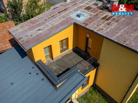 Nabízíme k prodeji víceúčelový, samostatně stojící rodinný dům, který je kombinací podnikání a bydlení. Celková plocha pozemku je 728 m2. Nemovitost se nachází v klidné lokalitě města Fulnek. Dům prošel v letech 2018 až 2021 rozsáhlou rekonstrukcí, kdy byla vybudovaná dílna, která tvoří samostatnou část objektu s vlastním vstupem. Dílna má jedno nadzemní podlaží, je zastřešena pultovou střechou a nabízí variabilní využití, od řemeslné výroby po servis nebo provozovnu. Součástí dílny je samostatná toaleta. Dále se v 1. NP domu nachází kancelář, el. laboratoř, archív, kuchyňka, chodba, dvě toalety a úklidová místnost. Tyto prostory lze rekolaudací změnit na dva byty, a to bez nutnosti stavebních úprav. V obytném podkroví je byt o dispozici 3 + kk s terasou. Dům je částečně podsklepený a napojený na všechny inženýrské sítě. Zdrojem tepla je plynový kotel. Nemovitost disponuje elektronickým zabezpečením. Terenní úprava pozemku a oplocení je již dle představ nového vlastníka.