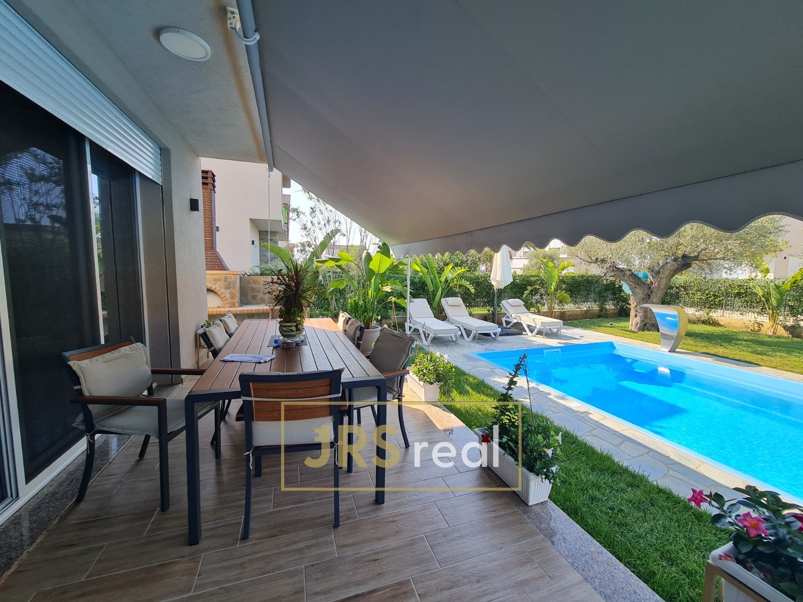 Prodej vily s bazénem – Rezidence Gala, Gjiri i Lalzit, Durrës – Albánie Cena: 420 000 € Dispozice: 3 ložnice, 2 koupelny Užitná plocha: 176 m² Celková plocha pozemku: 420 m² Stav: plně zařízeno, k okamžitému nastěhování Typ nemovitosti: samostatně stojící vila s vlastním bazénem Vzdálenost od moře: přibližně 850 m – cca 5 minut pěšky Popis nemovitosti: Nabízíme k prodeji krásnou vilu v klidné a dobře organizované rezidenci Rezidenca Gala, jen krátkou chůzí od krásné pláže v Gjiri i Lalzit. Vila je ve výborném stavu a kompletně zařízená. Nemovitost je rozdělena do dvou podlaží: Přízemí: prostorný světlý obývací pokoj propojený s kuchyní a společná toaleta. Výstup na verandu o velikosti cca 24 m², ideální pro posezení. Patro: tři samostatné ložnice a koupelna. Před domem se nachází soukromý bazén a upravená zahrada, která přispívá k příjemnému rodinnému nebo dovolenkovému prostředí.