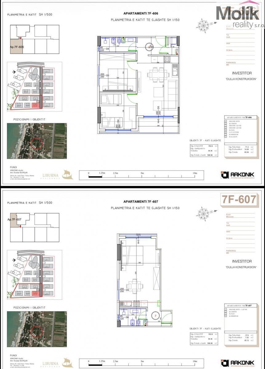 ZAMĚŘENO PRO INVESTORY! Nabízíme k prodeji celé 6.patro s 588.96 m2 bytových jednotek v jedné z nejvíce ikonických rezidencí na albánské riviéře. Tento projekt kombinuje moderní architekturu, špičkové materiály a bezprostřední blízkost Jaderského moře. Klíčové parametry apartmánů: 3 x 3+kk, 4 x 2+kk, 1 x garsonka Dispozice: 2+kk 84 m2 (prostorný obývací pokoj s kuchyňským koutem, samostatná ložnice, koupelna, balkon). Dispozice: 2+kk 84 m2 (prostorný obývací pokoj s kuchyňským koutem, samostatná ložnice, koupelna, balkon). Dispozice: 2+kk 61.56 m2 (obývací pokoj s kuchyňským koutem, samostatná ložnice, koupelna a prostorný balkon). Dispozice: 2+kk 66.12 m2 (obývací pokoj s kuchyňským koutem, samostatná ložnice, koupelna a prostorný balkon). Dispozice: 3+kk 78 m2 (obývací pokoj s kuchyňským koutem, samostatná ložnice, koupelna a prostorný balkon). Dispozice: 3+kk 84.60 m2 (prostorný obývací pokoj s kuchyňským koutem, samostatná ložnice, koupelna, balkon). Dispozice: 3+kk 85.56 m2 (prostorný obývací pokoj s kuchyňským koutem, samostatná ložnice, koupelna, balkon). Garsonka: 45.12 m2 (otevřený obývací prostor s kuchyňským koutem, koupelnou a odděleným spacím koutem, balkon). Podlaží: 6. patro (v budově s moderním výtahem). Lokalita: Golem, Durrës (Albánie) Zvýhodněná cena za celé patro je 1100 m2. Při jednotlivém prodeji 1200 m2. Tato residence není jen bytový dům, je to životní styl. Rezidence je navržena tak, aby poskytovala maximální komfort a bezpečí. Rezidence bude disponovat také hotelem, zajištěna správa nemovitosti. Prémiová kvalita: Stavba splňuje nejvyšší evropské standardy (tepelná a akustická izolace, kvalitní hliníková okna). Design a komfort: Světlé interiéry díky velkoformátovým oknům a promyšlené dispozici. Vybavenost: V okolí naleznete privátní pláže, luxusní restaurace, kavárny a veškerou občanskou vybavenost. Investiční příležitost Díky své poloze a prestiži je tento apartmán ideální volbou pro: Vlastní rekreační bydlení u moře v dojezdové vzdálenosti od letiště v Tiraně (cca 35 min). Krátkodobý pronájem s vysokým výnosem (ROI) díky neutuchající poptávce turistů po kvalitním ubytování v Golemu. Pro více informací a dostupnosti bytových, mě neváhejte kontaktovat 7 dní v týdnu!
