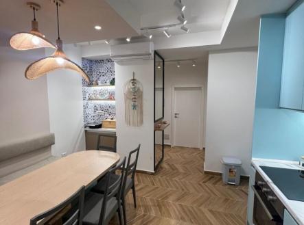 Apartmán v Golemu, vzdálený pouhých 100 metrů od moře. Má celkovou vnitřní plochu 61 m a navíc prostornou verandu o rozloze 73 m, což poskytuje spoustu soukromého venkovního prostoru ideálního pro letní posezení nebo grilování. Interiér je laděn v moderním středomořském stylu s důrazem na přírodní materiály a světle neutrální tóny: Obývací část s kuchyní: otevřený prostor s jídelním koutem a plně vybavenou kuchyní v jemných pastelových barvách. Dominuje elegantní osvětlení a praktické vestavby. Ložnice: útulná a harmonicky zařízená s manželskou postelí, nočními stolky a vestavěnou šatní skříní s dekorativními ratanovými výplněmi. Teplé světlo z designových lamp vytváří příjemnou atmosféru. Exteriér / veranda: prostorná terasa s venkovním grilem a pracovní plochou z kamene ideální pro letní večery. Součástí je i připojení na vodu a dostatek úložného prostoru. Celkově působí apartmán velmi svěže, komfortně a nadčasově, perfektní jak pro rekreační využití, tak i jako investice k pronájmu. Pro více informací mě neváhejte kontaktovat 7dní v týdnu!