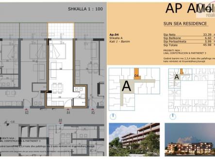 Nabízíme k prodeji moderní studiový apartmán o velikosti 45.98m/2 v Golemu, okres Kavajë v developerském projektu. Termín dokončení stavby je 2027. Tento apartmán se nachází ve 1.patře v 5.-podlažní budově s výtahem. Apartmán disponuje obývací částí s kuchyňským koutem, koupelnou a balkónem. Součástí rezidence bude bazén s rozlohou 30m/2. 300m od pláže. Pro více informací o tomto developerském projektu kde máme k dispozici více velikostních variant, mě neváhejte kontaktovat.