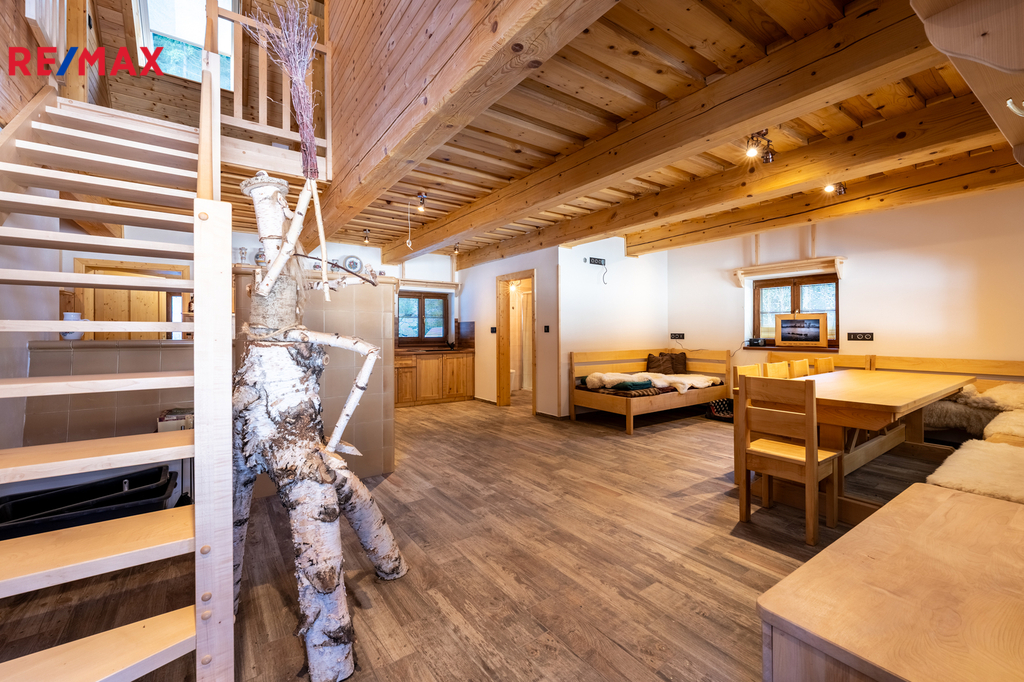Nabízíme jedinečnou chalupu v obci Halenkov, která se nachází uprostřed lesů s protékajícím potůčkem a nabízí naprostý klid, soukromí a krásnou valašskou přírodu. Velkou výhodou je, že i přes tuto polohu je chalupa celoročně dostupná po asfaltové příjezdové komunikaci. Jedná se o novou dřevěnici o dispozici 4+kk se zastavěnou plochou 109 m² (užitná plocha 218 m²), která je postavená s důrazem na komfort i praktičnost. V přízemí se nachází prostorný obývací pokoj s kuchyňským koutem, ložnice, koupelna a WC. Dále technická místnost s výstupem do zastřešené pergoly. Z obývací části výstup na zahradu. Ve 2.NP jsou 2 prostorné pokoje. Aktuální kapacita je 13 lůžek. Pozemek má výměru 699 m² a je na něm umístěna technická stavba (garáž / zahradní domek). Vytápění je řešeno především kachlovými kamny, a plynovým kotlem. V přízemí podlahové vytápění, jinak radiátory. Plyn je zajištěn zásobníkem o objemu 3 000 litrů, který se obvykle doplňuje jednou ročně. Elektřina je řešena velmi úsporně a nezávisle pomocí fotovoltaiky s velkým bateriovým úložištěm (8 baterií). Součástí vybavení je také benzínová centrála, která v případě potřeby dobíjí baterie, a chalupa je zároveň připravena i na možnost napojení plynové centrály. Voda je zajištěna z vrtu o hloubce 38 metrů a k dispozici je také užitková studna. Chalupa je připravena na napojení na zabezpečovací pult, takže je vhodná i pro ty, kteří chtějí mít svůj objekt pod kontrolou i na dálku. Lokalita je ideální pro milovníky přírody, klidu a aktivního odpočinku, protože v okolí najdete turistické trasy, cyklostezky, lesní cesty i krásná místa pro relax. Ve výborné dojezdové vzdálenosti jsou také Velké Karlovice a další oblíbené rekreační lokality, kde se nachází lyžařské areály, běžkařské stopy, wellness centra, vodní svět, koupaliště, golf i kompletní občanská vybavenost. Pro více informací mne neváhejte kontaktovat.