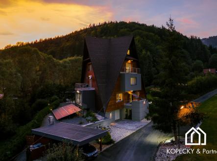 Realitní kancelář KOPECKY RealEstate & Partners, s.r.o. má tu čest představit vám exkluzivní nabídku prodeje Vily Anna – jedinečného skvostu v srdci Valašska a Beskyd. Vila Anna je mistrovským dílem uznávaného architekta Jaroslava Kopeckého, která spojuje eleganci, komfort a moderní technologie v harmonickém souladu. Tato výjimečná nemovitost nabízí užitnou plochu 431 m2 a rozkládá se na rozsáhlém pozemku o velikosti 7 350 m2, což zaručuje naprosté soukromí a klid. Unikátní architektura a luxusní interiér: Vila je postavena na trojúhelníkovém půdorysu a disponuje čtyřmi patry s plně vybavenými apartmány. Každý detail byl pečlivě promyšlen, aby poskytoval maximální komfort a estetický zážitek. Moderní kuchyně s exkluzivním vybavením vám přinese radost z vaření, zatímco otevřený obývací prostor je ideální pro setkávání s rodinou a přáteli. Dechberoucí výhledy a slunné terasy: Každý apartmán nabízí nádherný výhled do okolní přírody, což zajišťuje naprostý klid a pohodu. Terasy jsou zalité sluncem od brzkých hodin, takže si zde můžete v příjemné atmosféře vychutnat vaši ranní kávu. Moderní technologie a ekologický provoz: Vila Anna je vybavena nejmodernějšími technologiemi pro maximální komfort a soběstačnost. Konstrukce domu je z monolitu (železobetonu), zateplená polystyrenem, s hliníkovou střechou zateplenou minerální vatou. Energetický provoz zajišťuje solární elektrárna napojená na střídač a tepelné čerpadlo, což přispívá k ekologickému a ekonomickému provozu. Vlastní vodárna s vrtem hlubokým 31 metrů a kanalizace řešená septikem zajišťují maximální soběstačnost. Relaxace a volnočasové aktivity: Nemovitost nabízí soukromé wellness s vířivkou a saunou pro dokonalou relaxaci. Venku se nachází vyhřívaný bazén s protiproudem, udržující teplotu na příjemných 30 °C, což umožňuje koupání po celý rok. Pro milovníky zimních sportů je na pozemku k dispozici lyžařský vlek ideální pro začátečníky. Zahrada a venkovní vybavení: Rozlehlá zahrada je místem pro rodinná setkání a volnočasové aktivity. K dispozici je terasa s grilem hned vedle bazénu, venkovní kino pro letní večery a rybníček se pstruhy, kde můžete celoročně rybařit. Grilování u rybníka a posezení u ohniště zaručují nezapomenutelné chvíle s vašimi blízkými. Ideální lokalita: Vila Anna se nachází uprostřed nádherného přírodního parku Valašska a Beskyd, kde moderní design a příroda spojily své síly a vytvořily jedinečný životní styl. Tato lokalita nabízí naprostý klid a zároveň snadnou dostupnost veškerých služeb. Jedinečná příležitost: Vila Anna není jen nemovitostí, ale místem, kde se vaše sny stávají skutečností. Takové nabídky jsou vzácné, a proto neváhejte využít tuto jedinečnou příležitost stát se majitelem tohoto výjimečného sídla. Kontaktujte nás: Pro více informací a sjednání prohlídky nás prosím kontaktujte. Jsme připraveni vám poskytnout veškeré potřebné informace a pomoci vám na cestě k vašemu novému domovu.