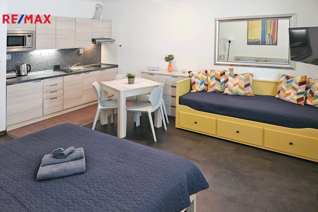 K prodeji nabízím plně vybavený apartmán 1+kk o ploše 32 m² v nadstandardním komplexu Rezident Harrachov. Nemovitost je ihned připravena k užívání a představuje výbornou volbu jak pro vlastní rekreaci, tak pro krátkodobý /zaběhlý/ pronájem. Apartmán se nachází ve vyhledávané a klidné lokalitě, pouhých 100 metrů od centra Harrachova a Anenského údolí, s celoročním využitím. Dispozice a vybavení: obytný prostor s manželskou postelí a rozkládací pohovkou kuchyňská linka: varná deska, digestoř, mikrovlnná trouba, lednice, dřez, rychlovarná konvice jídelní stůl se židlemi pro 4 osoby televize koupelna se sprchovým koutem a toaletou Apartmán se prodává kompletně zařízený, bez nutnosti dalších investic. Další výhody: vlastní parkovací stání přímo před apartmánem terasa vhodná k posezení sklep – ideální pro lyže nebo kola zastávka skibusu v docházkové vzdálenosti Investiční potenciál atraktivní horská lokalita s vysokou poptávkou po ubytování po celý rok vhodné pro krátkodobý pronájem (Airbnb / Booking) kombinace vlastního užívání a pravidelného výnosu z pronájmu Shrnutí: 1+kk, 32 m² nadstandardní rezidenční komplex centrum Harrachova 100 m parkování, terasa, sklep okamžitě k dispozici ideální investice i rekreační nemovitost