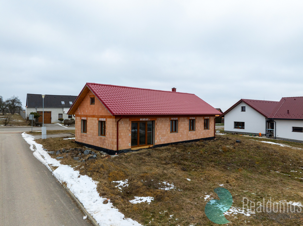 Ve výhradním zastoupení RK Realdomus Vám zprostředkujeme prodej velmi hezké novostavby v Hartmanicích u Žimutic. Tato obec se nachází v Českobudějovickém okrese a je vzdálená pouze 27km od Krajského města. Zároveň je vzdálená jen 20 km od dálnice a 17km od města Týn nad Vltavou. Žije zde pouze 200 obyvatel a občanům je k dispozici místní obecní úřad. RD nabízí dispozici čtyř pokojů, technické místnosti, předsíně a prostorné koupelny, kde je vyzděný, prostorný sprchový kout. Jedná se o 1NP s vazníkovou střešní konstrukcí, která umožňuje pouze půdní úložný prostor. Tato nemovitost je ve fázi výstavby a nového majitele bude čekat ještě dokončit rozvody topení, omítek, fasády a časem realizace prostorné zahrady dle vlastní fantazie. Nyní jsou dokončené elektroinstalace a zaklopené, zaizolované stropy a podlahy. Stavba probíhala dle současných moderních technologií a používán byl pouze kvalitních stavební materiál. Nabízíme k náhledu reálné fotografie a zároveň vizualizace pro lepší představu a orientaci v prostoru. Nemovitost se nachází v klidné části obce, kde jsou pouze novostavby a žijí zde převážně mladé rodiny. Jedná se o rohovou parcelu kde je však zajištěn dostatek soukromí. Pokud hledáte klidné místo v příjemné lokalitě je tato nabídka přesně pro Vás. Pokud Vás tento RD zaujal, neváhejte se obrátit pro více informací na realitního makléře. Uvedené výměry jsou pouze orientační. V případě více zájemců bude nemovitost prodána nejlepší nabídce a majitel si vyhrazuje právo vybrat kupujícího na základě jim zvolených kritérií. Veškeré zveřejněné údaje v toto inzerátu mají pouze informativní charakter.