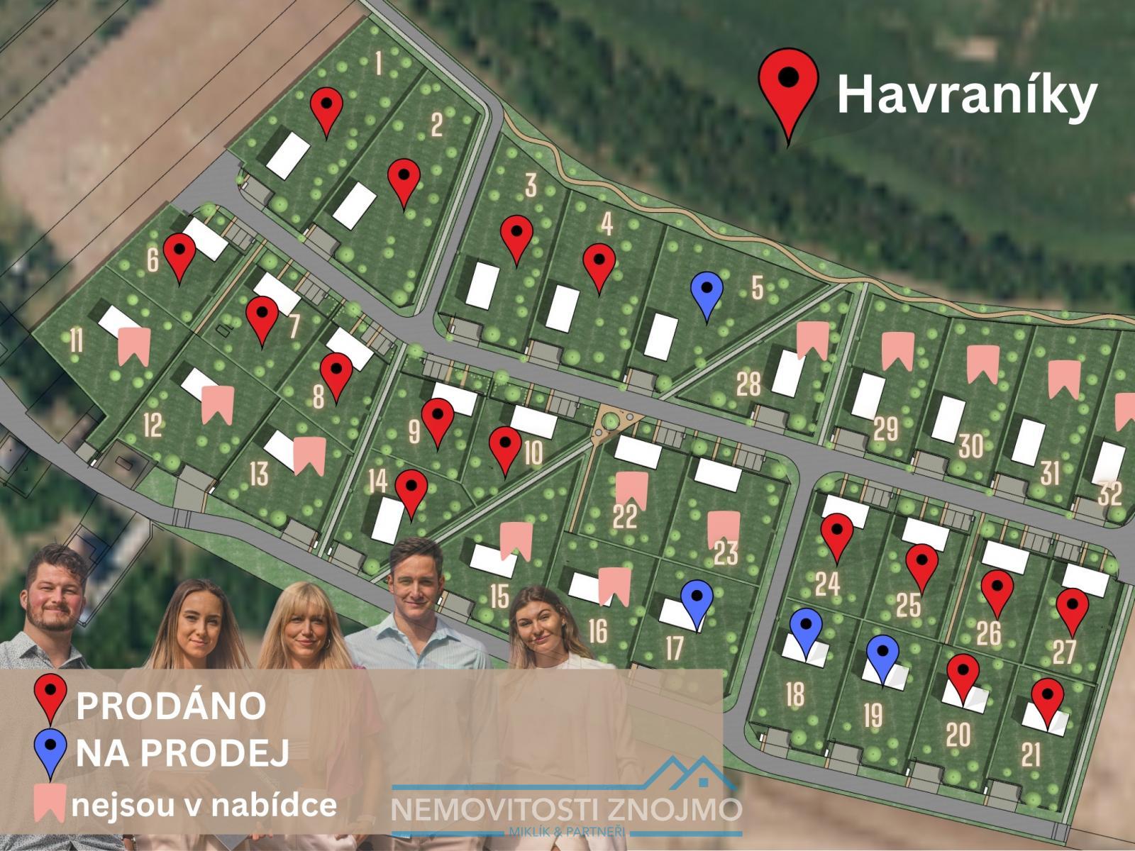 K prodeji nabízíme poslední 4 stavební parcely z původních 20ti nabízených, od výměry 1132m2 - 1678m2, v obci Havraníky u Znojma. V dohledné vzdálenosti od krásného vinařství Thaya, které získalo několik architektonických ocenění. K datu 15.2.2026 jsou volné poslední 4 pozemky: číslo 5 - 1678m2 - 2.500,- Kč/m2 číslo 17 - 1255m2 - 2.500,- Kč/m2 číslo 18 - 1132m2 - 2.500,- Kč/m2 číslo 19 - 1134m2 - 2.500,- Kč/m2 U všech pozemků se připočítává + 4 % právní servis (včetně provize realitní kanceláři i DPH). Níže informace k inženýrským sítím: - na všechny IS jsou již vydaná STAVEBNÍ POVOLENÍ - vodovod je již k tomuto sektoru s pozemky dotažený a zkolaudovaný MÚ Znojmo: voda dotažená aktuálně do 2/3 lokality (chybí jen poslední 3. etapa) - elektřina: aktuálně probíhá kolaudace všech elektro přípojek, a také nové trafostanice v oblasti - komunikace v oblasti bude připravena jako šotolinová, pro stavební účely, následně dokončena jako asfaltová/zámková dlažba, i s pouličním osvětlením - kanalizace: schválená pro celou oblast, v rámci rozšíření pro celou obec Havraníky, dokončení hlavní stoky max do 5 let, do té doby je třeba kalkulovat s jímkou k RD Pozemek leží na okraji obce v nově vznikající lokalitě, jedná se o velkorysé pozemky pro rodinné domy, a bude tak zachován jednotný ráz obce. Bližší informace a termíny prohlídek u pana Ing. Miklíka, volat můžete kdykoliv, včetně víkendů a svátků.