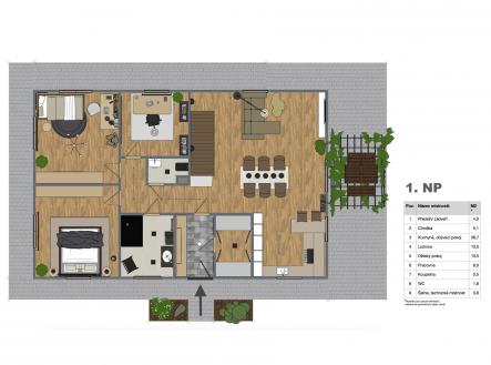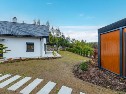 Dům, kde klid má svůj domov. Vítejte v Heřmanicích u Frýdlantu – na místě, kde se každý den probouzíte do ticha, vůně trávy a výhledu na zeleň. Právě tady stojí novostavba z roku 2025 (kolaudace říjen 2025), která spojuje moderní design, praktičnost a kouzlo domova, kam se budete každý den rádi vracet. Tento zděný rodinný dům s dispozicí 6+kk a užitnou plochou 190 m² byl navržen s důrazem na pohodlí, světlo a prostor. Na pozemku o velikosti 812 m² najdete nejen krásně upravenou zahradu, ale také zahradní domek, přístřešek pro dvě auta a zastřešenou terasu – ideální pro klidné ráno s kávou i dlouhé letní večery. Interiér, který vás okouzlí. Už při vstupu vás přivítá prostorná předsíň s technickou místností, odkud se otevírá průchod do velkolepého obývacího pokoje. Dominantou je mramorový krb doplněný dřevěnými lamelami, které ladí s elegantními podlahami ve vzoru rybí kosti. Otevřený prostor propojuje moderní kuchyň s jídelnou a navazuje na venkovní terasu. Dům nabízí také podlahové vytápění napojené na tepelné čerpadlo, plastová okna s trojskly a jednotný, příjemný design v tónu světlého dubu. V přízemí najdete dvě ložnice, pracovnu (či pokoj pro hosty), koupelnu s walk-in sprchou a samostatnou toaletu. Z každého pokoje je vstup na terasu obklopující dům. V patře vás čekají další dvě prostorné místnosti se šikminami – ideální pro dětské pokoje, hernu, ateliér nebo šatnu snů. Zahrada a technické zázemí Zahrada je kompletně upravená – nový trávník, nově vysazené stromky, živý plot, květiny, zpevněné chodníky, zatravňovací plochy i elektrická brána na dálkové ovládání. Dům je napojen na vlastní vrtanou studnu, má moderní ČOV, a díky kvalitním materiálům a energetické třídě B je provozně velmi úsporný. Lokalita, kde najdete rovnováhu. Heřmanice u Frýdlantu jsou vyhledávané pro svůj klid a blízkost přírody. Do Frýdlantu dojedete za 10 minut, do Liberce za půl hodiny – a přitom žijete v oáze klidu obklopené lesy a loukami. Místo jako stvořené pro rodinný život, kreativní duši i každého, kdo touží po pomalejším tempu a soukromí. V zimě oceníte blízkost Jizerských hor a jejich ski areálů, v létě výlety na kole, výhledy i kulturní památky v okolí. Tento dům není jen novostavba. Je to nový začátek. Místo, kde může růst váš příběh. Pro více informací a sjednání prohlídky mě neváhejte kontaktovat. Ráda vám dům osobně představím.