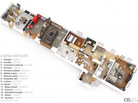 Rodinný dům 3+1 na pozemku o velikosti 1732m2 s garáží, venkovní kuchyní, stodolou a dalšími stavbam