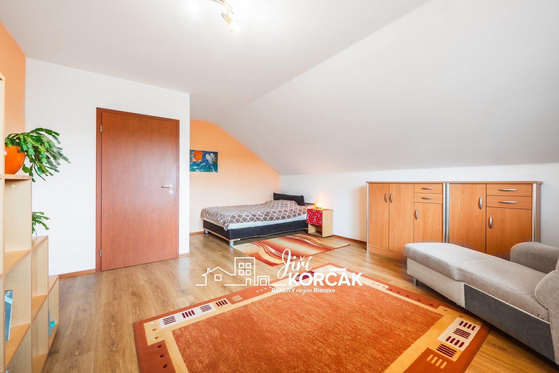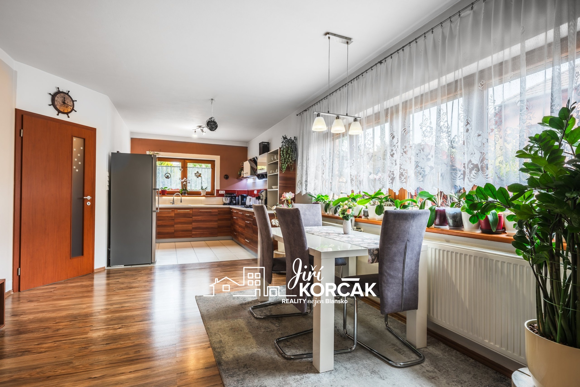 V klidné části obce Heršpice u Slavkova, ve slepé ulici s minimálním provozem, najdete moderní a zároveň útulný rodinný dům s dispozicí 5+1, garáží, dílnou a krásnou zahradou. Dům byl postaven v roce 2011 a zkolaudován v roce 2024. Při stavbě byl kladen důraz na kvalitu, praktičnost a nízké provozní náklady. Stavba je z Porothermu, má plastová okna s elektrickými předokenními roletami v přízemí a mechanickými roletami v patře. Dům je napojen na všechny inženýrské sítě – elektřinu, plyn, vodu i kanalizaci. O vytápění se stará plynový kotel nebo krb na dřevo, přičemž teplou vodu zajišťuje teplená smyčka s 250litrovým zásobníkem. Součástí výbavy je také solární elektrárna o výkonu 6 kW s bateriovým úložištěm 10,5 kW – bez přetoku do sítě. Díky tomu je provoz domu mimořádně úsporný, s měsíčními náklady okolo 2 000 Kč. V každém patře je klimatizace, nechybí kamerový systém pro větší bezpečí. K domu patří také nedokončená pergola připravená jako budoucí zimní zahrada. Zahrada potěší každého, kdo má rád klid a přírodu. Najdete zde jezírko o hloubce 1,6 m s přírodním čištěním vody, rozvody užitkové a dešťové vody, a dostatek prostoru pro odpočinek i praktické využití. Před domem je vjezdová brána ke garáži s dalším parkovacím místem, nechybí ani samostatný vjezd ke dřevníku. Pokud hledáte moderní, energeticky úsporný dům v tichém prostředí s pohodovým zázemím a bez nutnosti větších investic, pak tenhle dům v Heršpicích stojí za osobní prohlídku.