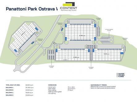 Pronájem skladu, výrobních prostor Ostrava. V zastoupení majitele a bez provize nabízíme atraktivní novostavbu skladu nebo výrobních prostor v nově vznikajícím logistickém parku přímo u dálnice D1, exit 330. - budova k dodání do 12 měsíců, - samostatné prostory v budově C, až 19200 m², lze dělit od 5000 m², - světlá výška 10 m, - bezprašné podlahy s minimální nosností 5 t/m², - vstupy z hydraulických ramp i v úrovni vozovky, - sprinklery, EZS, EPS, - příjezd a manipulace TIR bezproblémová, parkování zdarma, - kancelářské prostory, vzorkovna na míru budoucího nájemce, - možnost výstavby celé budovy na míru, přesně dle požadavku zájemce (BTS), - v areálu lze pronajmout až 92000 m². Cena bude stanovena dle dalších požadavků individuálně. Fotografie hotových budov jsou ilustrační, z již proběhlé výstavby. Pro více informací nás kontaktujte.