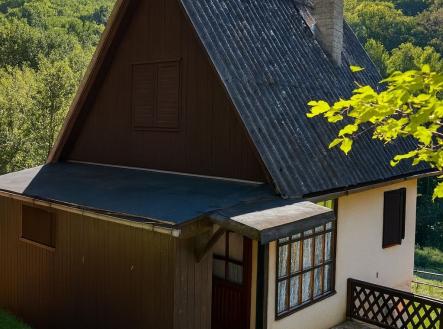 Prodej chaty s garáží s terasovitou zahradou s nádherným výhledem do přírody