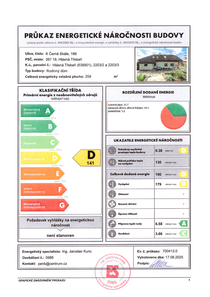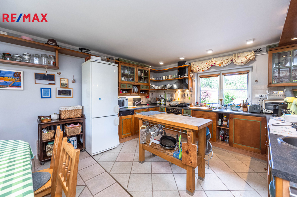 Exkluzivní nabídka prostorného rodinného domu v atraktivní lokalitě u Dobřichovic a Řevnic. Nabízíme ke koupi samostatně stojící rodinný dům s dispozicí 4+kk o užitné ploše 247 m², nacházející se na krásném, rovinatém pozemku o celkové výměře 1 406 m² v klidné části obce Hlásná Třebaň – Rovina. Dům byl kolaudován v roce 1998 a průběžně udržován ve velmi dobrém stavu. V roce 2020 proběhla rekonstrukce spodní koupelny. K dispozici je garáž, prostorný sklep, terasa, dva zahradní domky a velmi pěkná, udržovaná zahrada. Hlavní přednosti nemovitosti: Dispozice 4+kk / užitná plocha 247 m² Podlahová plocha: 218 m² Lodžie: 6 m² Balkon: 2 m² Garáž: 21 m² Velký sklep (40 m²) – s dílnou, plně vybavenou kuchyní a sprchovým koutem Zastřešené stání pro další vozy Rovinatý oplocený pozemek (1 406 m²) – jižní orientace, ovocné stromy, okrasné keře, dvě úrovně zahrady 2 zahradní domky – ideální pro uložení nářadí a techniky Krbová kamna napojená na topný systém Vlastní studna Dispozice domu: Přízemí: Zádveří a předsíň Ložnice s přístupem do herny/úložného prostoru Prostorná hala Koupelna s walk-in sprchovým koutem (rekonstruována 2020) Samostatná toaleta Šatna Velký obývací pokoj s kachlovými kamny Kuchyně s jídelnou a francouzskými okny vedoucími na terasu a do zahrady Patro: 2 prostorné ložnice – každá s přístupem na balkon nebo lodžii Šatna Koupelna s vanou, WC a bidetem Technické informace: Napojeno na plyn, elektřinu a veřejný vodovod Vlastní kopaná studna s přepínáním mezi zdroji ČOV – domácí čistička odpadních vod Vytápění a ohřev vody: plynový kondenzační kotel Plastová okna, keramická dlažba, korek a koberce Lokalita: Rovina je klidná část obce Hlásná Třebaň, obklopená přírodou a v dosahu chráněné krajinné oblasti Brdy. Dům se nachází v zástavbě rodinných domů s výbornou dostupností do Prahy – vlakové spojení z nedalekých Dobřichovic (cca 25–30 minut do centra). Veškerá občanská vybavenost je dostupná ve 4 km vzdálených Dobřichovicích. Ideální volba pro ty, kteří hledají: Klidné rodinné bydlení v přírodě Prostor, soukromí a kvalitní zázemí Dobrou dostupnost do Prahy Prostorný dům s praktickým uspořádáním Hypoteční servis zdarma. Doporučujeme osobní prohlídku – kontaktujte nás a rádi vás domem provedeme.