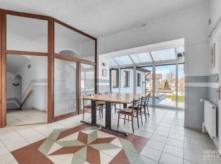 Nabízíme k prodeji komerční nemovitost v samotném centru Hlinska, na Poděbradově náměstí. Dům se nachází v historickém jádru města, v zástavbě tvořené převážně komerčními objekty a obytnými domy. Jedná se o třípodlažní zděný dům se sedlovou střechou, krytou eternitovými šablonami, a menším sklepem o rozloze přibližně cca 10 m². V přízemí se nachází kancelář s finančním poradenstvím, Domácí péče Včelka, výrobní a skladové prostory včelích produktů. V prvním patře jsou kancelářské prostory o pěti místnostech, které byly aktuálně z větší části využívány i k bydlení. Tyto prostory je možné rekonstruovat na bytové jednotky nebo znovu připravit pro kancelářské využití. Ve druhém patře se nachází prostorný podkrovní byt 2+kk s balkonem a dále dva samostatné pokoje s vlastní koupelnou a společnou kuchyní. Tyto dva pokoje je možné jednoduchou stavební úpravou spojit a vytvořit tak další plnohodnotnou bytovou jednotku. Dům prošel v roce 1998 kompletní rekonstrukcí, během níž byla přistavěna dvě nadzemní podlaží. V letech 2004–2016 následovaly další úpravy, mimo jiné výstavba zadní přístavby s garážemi a skladem. Podlahy v domě tvoří kombinace dlažby, parket, linolea, plovoucí podlahy a koberců. Nemovitost je napojena na všechny inženýrské sítě – elektřinu, vodovod, kanalizaci i plyn. Vytápění zajišťují dva plynové kotle. Jeden slouží pro první a druhé nadzemní podlaží, kde je ohřev vody zajištěn elektrickým bojlerem a průtokovými ohřívači. Druhý kotel vytápí a ohřívá vodu výhradně pro třetí podlaží. Celková užitná plocha domu činí přibližně cca 580 m². Pozemek má rozlohu 760 m², z čehož zastavěná plocha tvoří cca 341 m² a zbytek, tedy přibližně 419 m², je zahrada za domem. Součástí nemovitosti jsou tři garáže (v současnosti využívané jako sklady) a dvě parkovací místa na sousedním pozemku ve vnitrobloku. Rádi vám pomůžeme i s financováním, dle vašich možností a požadavků. Budeme se těšit na osobní prohlídku a setkání s vámi.