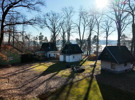 Předmětem prodeje je zděná patrová chata v chatové oblasti (celkem 8 chat) u rybníka Bezdrev. Nalézá se na vyvýšeném náspu a díky tomu je z ní pěkný výhled do okolí. Přední části vévodí velká terasa cca 15 m2, vedle níž je samotný vstup do obytné části. V přízemí je chodbička, kterou vstupujeme do hlavní obývací místnosti s krbovými kamny. Z této místnosti je vstup do kuchyňky s plynovým sporákem (napojený na plynovou bombu) a kuchyňskou linkou, stejně tak i do koupelny se sprchovým koutem. Po točivém schodišti se dostáváme do horního patra, kde je v hlavní místnosti pracovní kout a prostor pro spaní s výstupem na další terasu. Z této místnosti je možné vstoupit do oddělené části, kde jsou dvě samostatná lůžka. Do chaty je zavedena elektřina a voda z vodovodního řádu. Ve venkovní části pod chatou je dřevěná a plechová bouda, obě sloužící k uskladnění materiálu a nářadí. Chata je stejně jako všechny v této oblasti na pozemku Správy železnic, jeho odkup v současné době není možný. Veškeré vybavení včetně elektrospotřebičů (TV s plochou obrazovkou, domácí kino, sporák, lednička, mikrovlnná trouba, vysavač) a další techniky (sekačka, elektrická a motorová pila a pod) jsou započteny v ceně chaty, stejně jako veškerý nábytek. K rybníku je to cca 100 m, na vlakovou zastávku Hluboká n/V cca 2 km. Díky krátké dojezdové vzdálenosti do Českých Budějovic (8 km) je oblast Bezdrevska velmi vyhledávanou lokalitou pro trávení volného času. Tato zděná chata je ve vynikajícím stavu a je připravena k okamžitému užívání pro nového majitele. Bližší informace vám rád poskytne makléř této zajímavé nabídky.