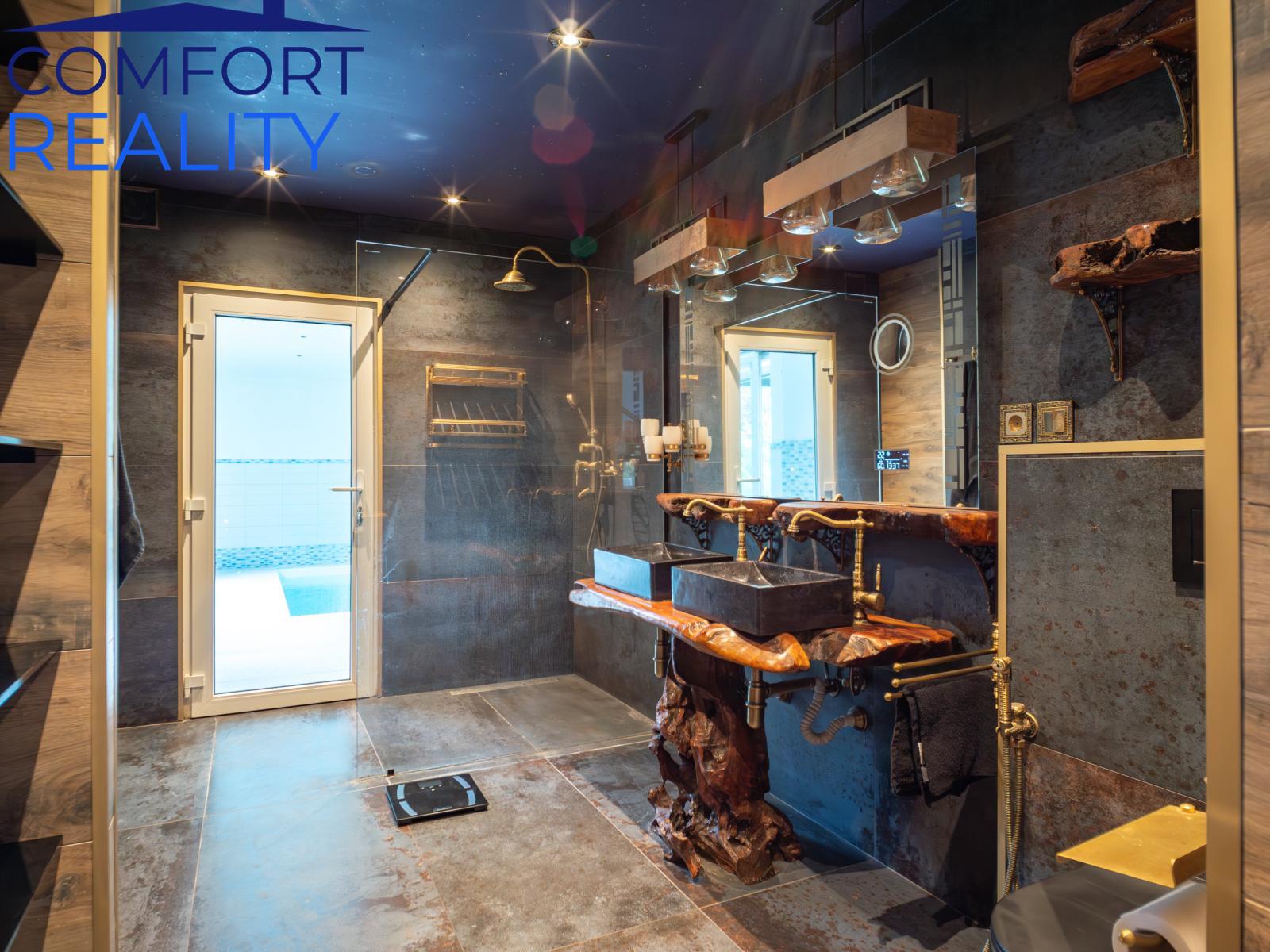 Luxusní rodinný dům 6+kk s bazénem a okrasnou zahradou Hlučín Představujeme vám mimořádnou nabídku rodinného domu 6+kk s užitnou plochou cca 300 m, který spojuje moderní komfort, styl a soukromí v srdci klidné části Hlučína. Tento dům je synonymem luxusního bydlení dokonale udržovaný, nadčasový a připravený k okamžitému nastěhování. Výjimečné prvky této nemovitosti: Krytý bazén se slanou vodou a protiproudem ideální pro relax i kondiční plavání. Nádherná okrasná zahrada o celkové velikosti 1922 m2, navržená zahradním architektem, poskytující naprosté soukromí a dokonalé místo pro odpočinek. Zahrada má vlastní a elektronicky řízené osvětlení a samo zavlažování. Na zahradě se nachází zahradní domek, který umožňuje uskladnění veškeré zahradní techniky a ještě dost místa zbývá pro vlastní nápady. Celý dům je v rámci svého luxusního designu, obložen okrasným a vzácným kamenem. Podlahové vytápění v obou patrech domu. Centrální vysavač. Příprava na tepelné čerpadlo. Kamerový systém na domě i v domě. Samostatná technická místnost. Prostorná terasa s posezením a přímým vstupem z obývacího pokoje. Venkovní vířivka. Dvojgaráž s dostatkem prostoru pro auta i uskladnění věcí. Elegantní obývací pokoj s krbem, který vytváří útulnou atmosféru. Plně vybavená posilovna. Luxusní venkovní jezírko, které dotváří harmonii celého pozemku. A budete li chtít, může se stát venkovním bazénem. Interiér domu je promyšlen do posledního detailu propojuje funkčnost s elegancí a nabízí maximální pohodlí pro celou rodinu. Dominantní obývací prostor s výhledem do zahrady a přímým vstupem na terasu působí vzdušně a reprezentativně. Dům se nachází v prestižní lokalitě s výbornou dostupností do centra Hlučína i Ostravy, s kompletní občanskou vybaveností v blízkém okolí. Pokud hledáte reprezentativní rodinné bydlení s duší, které spojuje přírodu, prostor a luxus, tenhle dům vás jednoduše okouzlí. V současné době není k dispozici energetický štítek, který bude majitelem dodán a z tohoto důvodu se musí uvádět energetická náročnost budovy písmenem G. Pro více informací a sjednání osobní prohlídky mě neváhejte kontaktovat.