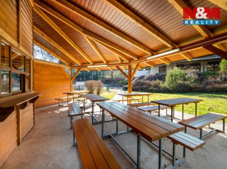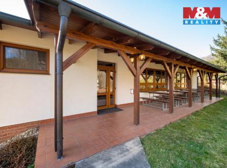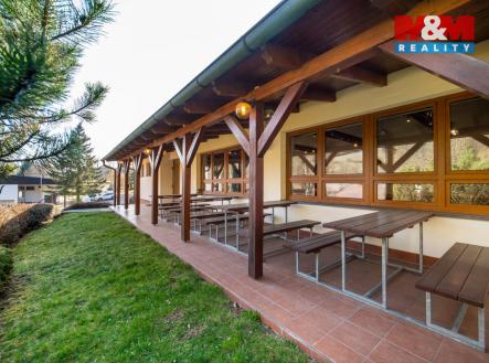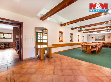 Nabízíme Vám k prodeji nadstandartní nemovitost s velkým potenciálem z hlediska využití, nacházející se v obci Hnátnice. Jedná se o bývalou restauraci s ubytováním a zázemím pro konání společenských akcí. Dispozice 1. NP: vstupní chodba, samotná restaurace s vybavenou kuchyní, společenský salonek, toalety pro dámy, pány, bezbariérové WC a technická místnost. Dispozice 2. NP: zasedací místnost, dva pokoje (dvoulůžkové), kancelář, sklad a dvě koupelny. Restaurace je částečně podsklepená a náleží k ní garáž, venkovní terasa, zahrada, hřiště na petangue, dvě parkoviště a zahradní domek včetně zastřešeného posezení s kuchyní a výčepem. Vytápění celého objektu zajišťuje plynový kotel do radiátorů, kachlová kamna a ohřev vody bojler. Nemovitost je napojena na veřejnou kanalizaci a vodovod. Pozemek je celý oplocen. Nemovitost lze využít jako sídlo firmy, restauraci nebo rodinný dům. Objekt je zabezpečen kamerovým systémem. Pokud Vás tato nabídka zaujala, zavolejte si pro více informací.