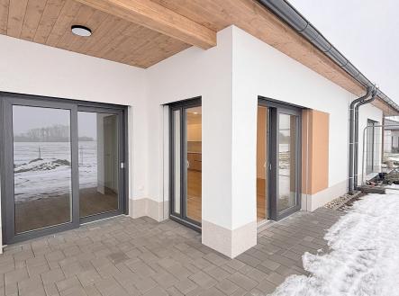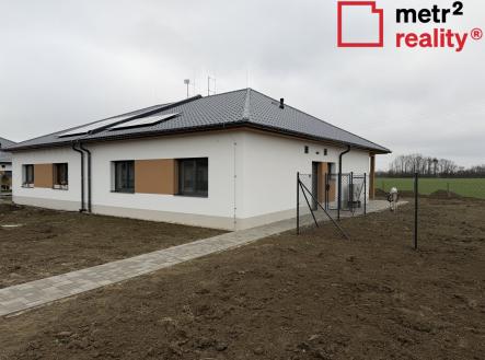 Nabízíme Vám k pronájmu moderní novostavbu zděného přízemního pasivního rodinného domu v obci Hnojice. Dispozice domu je 4+kk s celkovou užitnou plochou 97 m2 a pozemkem o celkové výměře 633 m2. Dům v řadové zástavbě s terasou 25 m2 je nepodsklepený, ze které je krásný výhled na Jeseníky. Vytápění domu je řešeno pomocí teplovodního systému, který obsahuje tepelné čerpadlo typu vzduch-voda, které zajišťuje pokrytí tepelných ztrát objektu. Součástí tepelného čerpadla je i zásobník na TUV. Ve všech místnostech RD je podlahové vytápění, které je v koupelně doplněno o topný žebřík. Součástí systému je také centrální rekuperační jednotka, jež zajišťuje přívod čerstvého vzduchu do obytných místností a odvod znehodnoceného (odpadního) vzduchu z koupelny, WC a kuchyně. FVE elektrárna, 3 panely na střeše, jednofázový střídač. Na zahradě je umístěna retenční podzemní nádrž pro sběr a následné využití dešťové vody s kapacitou 8 m3. Dešťová voda je využita na splachování WC a zálivku zahrady. Dům je napojen na vodu z lokálního zdroje, kanalizace obecní. Komfortní parkování pro dvě vozidla před domem s nabíjecím systémem pro elektro vozy. Cena nájemného činí 30.000 Kč měsíčně +3.500 inkaso. Dům je volný od 1.2.2026. PENB skupiny A. Obec Hnojice se nachází 15 km severně od Olomouce, 6 km západně od Šternberka, s velmi dobrou dopravní dostupností do obou měst. Svou polohou je obec přímo předurčena být zastávkou především pro cykloturisty, kteří projíždějí z Olomouce či Litovle směrem na Šternberk do pohoří Nízkého Jeseníku, nebo naopak směřují od Šternberka na cyklostezku vedoucí přes CHKO Litovelské Pomoraví. Každý z cykloturistů se v naší obci může zastavit a občerstvit v restauraci či v nekuřácké vinárně, které samozřejmě nabízejí i venkovní posezení.