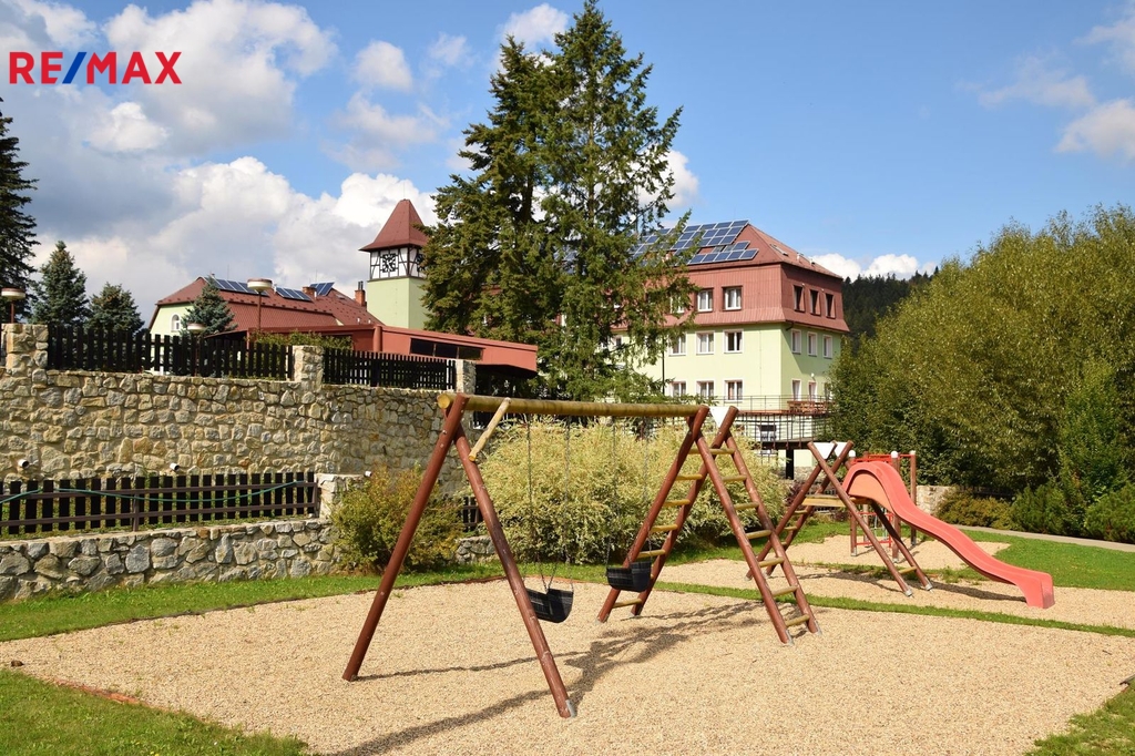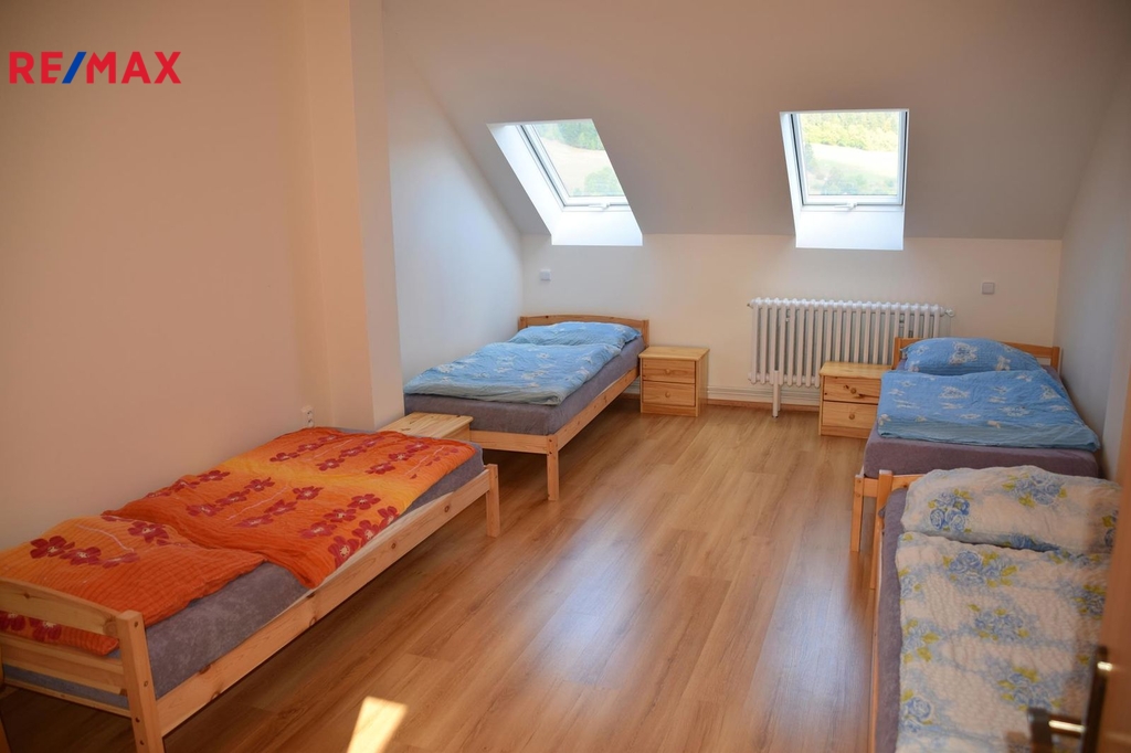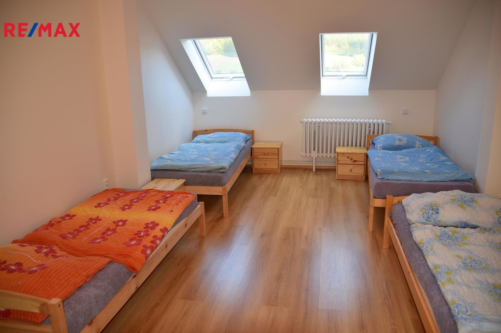 Nabízíme k prodeji plně zrekonstruovaný víceúčelový objekt s rozsáhlými pozemky o ploše 8 934 m², situovaný v nádherném prostředí Hornosvratecké vrchoviny. Areál je ve vynikajícím technickém stavu, napojen na inženýrské sítě a připraven k okamžitému provozu. Díky své kapacitě, poloze a kvalitnímu zázemí představuje atraktivní investici s širokými možnostmi využití. Využití objektu • rekreační a ubytovací zařízení • firemní školící a teambuildingové centrum • ozdravné a sportovní pobyty, školy v přírodě • zařízení sociálních služeb nebo domov pro seniory • pronájem pro skupinové akce Kapacita a vybavení • ubytovací kapacita až 100 osob • dvou a třílůžkové pokoje, 4 lůžkové a 7 lůžkové pokoje v podkroví • pokoje s vlastní koupelnou a WC • jídelna pro 70 osob, kongresový sál s terasou (45 míst), 3 učebny (70 míst) • společenský sál s barem a tanečním parketem • tělocvična, posilovna a sál se zrcadly • výtah a bezbariérový přístup Exteriér a relaxační zóna • přírodní koupaliště bez chemické úpravy vody • dětské hřiště, altán, kuželky, jezírko a potok • kompletně oplocený areál, upravená zahrada, bezbariérový terén Technický stav a rekonstrukce • 2006–2010: kompletní rekonstrukce objektu (rozvody, zateplení, fasáda, okna, střecha, kotelna, výtah, oplocení, přírodní koupaliště) • 2012: přístavba vestibulu • 2013: nástavba pokojů, instalace fotovoltaických panelů • 2018: modernizace sociálních zařízení Díky komplexní infrastruktuře, flexibilnímu využití a výborné kondici budovy se jedná o stabilní investici s okamžitým výnosem a dlouhodobým potenciálem. Areál je ideální pro investory hledající rozsáhlejší provozní objekt v klidné lokalitě s širokým spektrem komerčních možností. Pro více informací kontaktujte makléře.