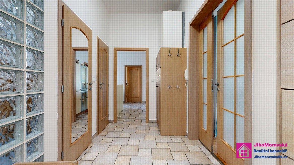 Hledáte ke koupi cihlovou bytovou jednotku v osobním vlastnictví, k nastěhování bez nutnosti rekonstrukce? Na klidném místě a zároveň se vším potřebným v blízkém okolí? Ve výhradním zastoupení majitele, Vám zprostředkujeme koupi bytové jednotky o velikosti 4+1 v ulici Sv. Čecha č.p. 2371/1, v okresním městě Hodonín. Byt se nachází v 1. zvýšeném nadzemním podlaží z celkového počtu čtyř podlaží a jednoho podzemního podlaží. V bytovém domě je pouze osm bytových jednotek. Bytový dům bez výtahu. Celková plocha bytu je 121 m², s obytnou plochou 105 m². Dispozice: předsíň, koupelna (rohová vana), balkón, toaleta, kuchyně a 4 pokoje. Půdorys bytu naleznete ve fotogalerii.V suterénu bytového domu se nachází zděný uzamykatelný sklep s plochou 11 m² a také společná nebytová jednotka. Každý vlastník bytu vlastní také podíl na této nebytové jednotce. Bezproblémové parkování pro dvě osobní auta (jedno v garáži a jedno před garáží) v uzavřeném dvoře s bránou na dálkové ovládání. Užitná plocha garáže je 18,50 m2. Rozměr vrat 2,85 x 1,90 m. Aktuální měsíční náklady na provoz bytu jsou 4.626 Kč (elektřina, plyn, voda, stočné, fond oprav a správa bytového domu). V kuchyňské lince jsou zabudovány vestavěné spotřebiče (digestoř, plynová varná deska, elektrická trouba, myčka) plus samostatně stojící lednice s mrazničkou). Byt je vytápěn vlastním plynovým kotlem, na podlaze je dlažba a parkety. V blízkosti domu se nachází několik obchodů, pošta, dětské hřiště, mateřská škola, úřady i restaurace. Do 10 minut chůze se dostanete do centra města Hodonín a také na autobusové i vlakové nádraží. K nastěhování dohodou. V případě více zájemců o koupi domu si majitel nemovitosti vyhrazuje právo pro výběr kupujícího, dle jeho požadavků a souhlasí s tím, že Realitní makléř může použít pro výběr kupujícího aukci. Zaujala Vás tato nabídka? Máte zájem o prohlídku? Vám vyhovující termín prohlídky (den a čas) s kontakty na Vás (tel. číslo a e-mail) zasílejte na e-mail makléře, formou odpovědi na inzerci. Realitní makléř Vás následně bude telefonicky kontaktovat.