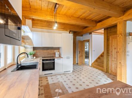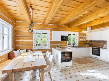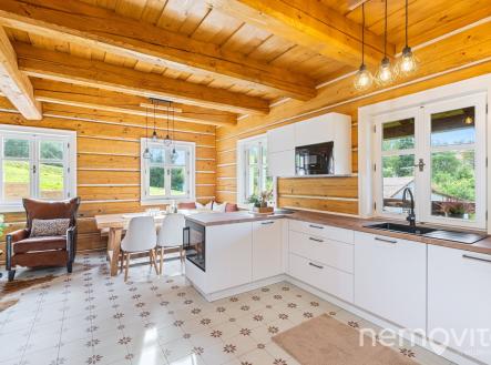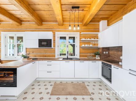 Zbrusu nová roubenka, která v sobě spojuje prvky tradičního stavitelství se soudobými poznatky a technologiemi. Stavba z masivních smrkových hranolů 30x30 cm je vytápěna tepelným čerpadlem a nechybí v ní ani sauna, kachlová kamna nebo špičková kuchyně s vestavěnou vinotékou. Vše v srdci Českého ráje, nedaleko hradu Trosky, v malé a klidné vesničce. Dvoupodlažní dům s dispozicí 4+kk a dvěma koupelnami má nad celým půdorysem prostornou půdu a taky venkovní zahradní domek, který je stejně jako celá opěrná zeď obložen pískovcem. Všechny tři ložnice se nachází nahoře, dole je tak především společenská část domu s koupelnou, ve které je zakomponována sauna. Vytápění je dole řešeno podlahovkou, případně pak krásnými kachlovými kamny. V domě je dostatek světla díky soustavě velkých oken a kdo by snad zatoužil po zimní zahradě, zastřešený prostor nabízí velká terasa s přesahem střechy. Ložnice mají 2x 12 m2, poslední pak 24 m2 a umožňuje rozdělení na dvě sekce. Vstupní zádveří domu (8 m2) nabízí prostor pro vestavěný nábytek a k dispozici je také technická místnost s místem na pračku a sušičku. V domě jsou použité kvalitní a osvědčené materiály (nejedná se o první roubenku majitele) - masivní dřevěné dveře, kvalitní spotřebiče, odolné nátěry. Vše je řešeno tak, aby bylo trvanlivé a bez investic v následujících letech. Pozemek o ploše přes 1.900 m2 je aktuálně neoplocený, k dispozici má přes 50 , hlubokou studnu, vlastní ČOV a také parking pro několik aut. Holenice se nachází 17 km od Turnova, 60 km od Hradce nebo 110 km od Prahy. Nejbližší dominantou této části Českého ráje je pak ikonický hrad Trosky. Pokud vás o nabídce zajímá více informací, rád vám pošlu odkaz na web domu (plánky, více fotek a podobně).