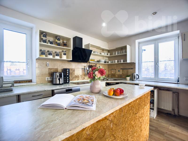 Vážení zájemci, nabízíme Vám k prodeji dům s unikátní možností spojit bydlení a podnikání pod jednou střechou. Nemovitost se nachází v žádané lokalitě Holic, v ulici Staroholická. Součástí domu je zavedený pneuservis (s možností odkupu vybavení) a funkční kadeřnictví v přízemí, které lze ihned provozovat. Dispozice a uspořádání Dům o dispozici 6+kk s celkovou podlahovou plochou 193,6 m² stojí na pozemku o rozloze 539 m² a nabízí komfortní, prakticky řešené prostory pro celou rodinu. Po vstupu Vás přivítá prostorná chodba vedoucí do technické místnosti. Navazující chodba zpřístupňuje kadeřnictví, dva pokoje a schodiště do patra. V patře se nacházejí úložné prostory, další dva pokoje, obývací pokoj s kuchyňským koutem a jídelnou, a také koupelna s toaletou. K domu dále náleží krytá pergola s přístřeškem, prostorné garáže a půdní prostor, který nabízí možnost budoucí vestavby. Technický stav a vybavení Dům je plně zateplený a prošel modernizací - byly provedeny nové rozvody elektřiny a vody, komín je nově vyvložkován. O nízké provozní náklady se stará fotovoltaický systém a tepelné čerpadlo, které zajišťují vysokou energetickou úspornost. Alternativně lze topit také kotlem na tuhá paliva umístěným v technické místnosti, kde najdete také zásobník na teplo a dva bojlery. Lokalita Holice nabízejí veškerou občanskou vybavenost - školy, obchody, restaurace i zdravotnická zařízení. Okolí je obklopeno krásnou přírodou, cyklostezkami a možnostmi pro volnočasové aktivity. Díky výbornému dopravnímu spojení vlakem i autobusem se snadno a rychle dostanete do Pardubic i dalších měst. "Žijte a podnikejte pod jednou střechou." Z důvodu nedostupnosti PENB ke dni zpracování inzerce uvádíme energetickou třídu G v souladu s platnou legislativou. Pro více informací či domluvení prohlídky neváhejte kontaktovat makléřku.