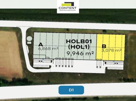 Pronájem skladu, výrobních prostor Holubice. V zastoupení majitele a bez provize nabízíme novostavbu skladu nebo výrobních prostor s velkou variabilitou využití v novém komerčním parku u D1. K dispozici samostatné industriální prostory, vhodné především pro skladování, logistiku, výrobu a velkoobchodní provoz. Skvělá lokalita u dálnice D1, EXIT 210. - budova ve výstavbě, k dispozici posledních 3078 m² - k dispozici do 6 měsíců od podpisu smlouvy - drive-in, hydraulické rampy - bezprašná podlaha minimálně 5 t/m² - čistá výška 10,5 m - denní světlo, sprinklery - příjezd a parkování TIR - kanceláře a sociální zázemí na klíč - možnost přizpůsobení prostor dle potřeby Cena bude stanovena dle dalších požadavků individuálně. Fotografie hotových budov jsou ilustrační, z již proběhlé výstavby. Pro více informací nás kontaktujte.