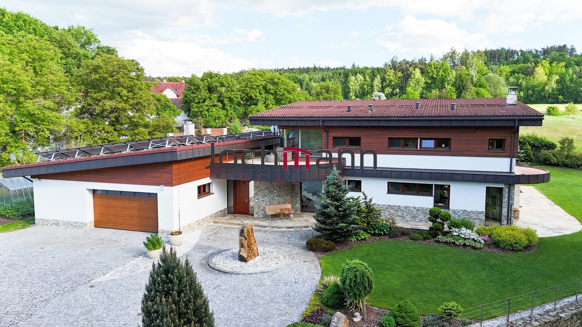 Za hranicí každodenního ruchu, v harmonii s přírodou stojí vila, která není jen stavbou, je to příběh. Příběh o místě, kde se snoubí nadčasová architektura s absolutním soukromím, poctivé materiály, příroda, komfort a klid. Tato výjimečná vila se nachází na nádherném místě. Funkčně řešená okrasná zahrada s vodními elementy pak nabízí těsné spojení s přírodou, kde si můžete dopřát ticho, užívat naprostý klid a velkolepý prostor. A to přitom pouhých 10 minut cesty od krajského města – Českých Budějovic. Celková plocha přes 455 m² poskytuje vzdušný prostor s důrazem na světlo, propojení interiéru s exteriérem a absolutní soukromí. Každý detail tohoto domu byl navržen s respektem k estetice i funkčnosti – od precizně zpracovaných obloukových stěn až po podlahy z amerického ořechu a dubu. Dominantní lustr od značky Preciosa (s více než 4.000 křišťálovými krystaly) ve schodištní hale pak celému prostoru propůjčuje nádech noblesy. V interiéru najdeme kromě velkorysé hlavní obytné zóny také stylovou pracovnu ve stylu 30. let s nábytkem vyrobeným na míru. Dispoziční řešení zahrnuje dále plně vybavenou kuchyni, 5 ložnic (přičemž u jedné z nich je privátní koupelna), šatny, technické místnosti i samostatný wellness prostor se saunou a zónou pro odpočinek. V neposlední řadě se na pozemku nachází důmyslně řešený prostor dílny a pro parkování vozidel pak skvěle poslouží tři zastřešená parkovací stání. Součástí vily je luxusní nerezový bazén o rozměrech 8 × 4 metry vybavený protiproudem, LED osvětlením, solární roletou a samozřejmě vyhříváním. Na bazén plynule navazuje terasa o ploše 192 m², tvořená kombinací kamene, dřeva, skla a nerezu – ideální místo pro odpočinek i společenská setkání. O sekání rozhlehlé zahrady se starají dvě automatické sekačky, což příjemně zvyšuje komfort užívání celé zahrady bez větších starostí. Vila je vybavena izolačními trojskly s bezpečnostní fólií, venkovními elektrickými roletami a úsporným vytápěním za pomocí tepelného čerpadla (záložně řešeno plynovým kotlem a kotlem na tuhá paliva). Samozřejmostí je také fotovoltaika s vlastním úložištěm elektrické energie. Technologické řešení tak odpovídá vysokým nárokům současného komfortu a soběstačnosti. Zvláštní pozornost si zaslouží monumentální kamenná zeď, která obklopuje pozemek domu a majestátní obelisk, kterým protéká voda. Není to jen architektonický prvek – je to symbol síly, stability a odolnosti, který propojuje vilu s okolní přírodou a současně mu dodává jedinečný charakter. Tato vila není pro každého. Je to volba pro ty, kteří touží po místě, kde se kvalita snoubí s krásou, technologie s klidem a kde se vše podřizuje jedinému – pohodě a soukromí svého majitele. Pro bližší informace k nemovitosti, k virtuální prohlídce a možností osobní schůzky kontaktujte, prosím, makléře.