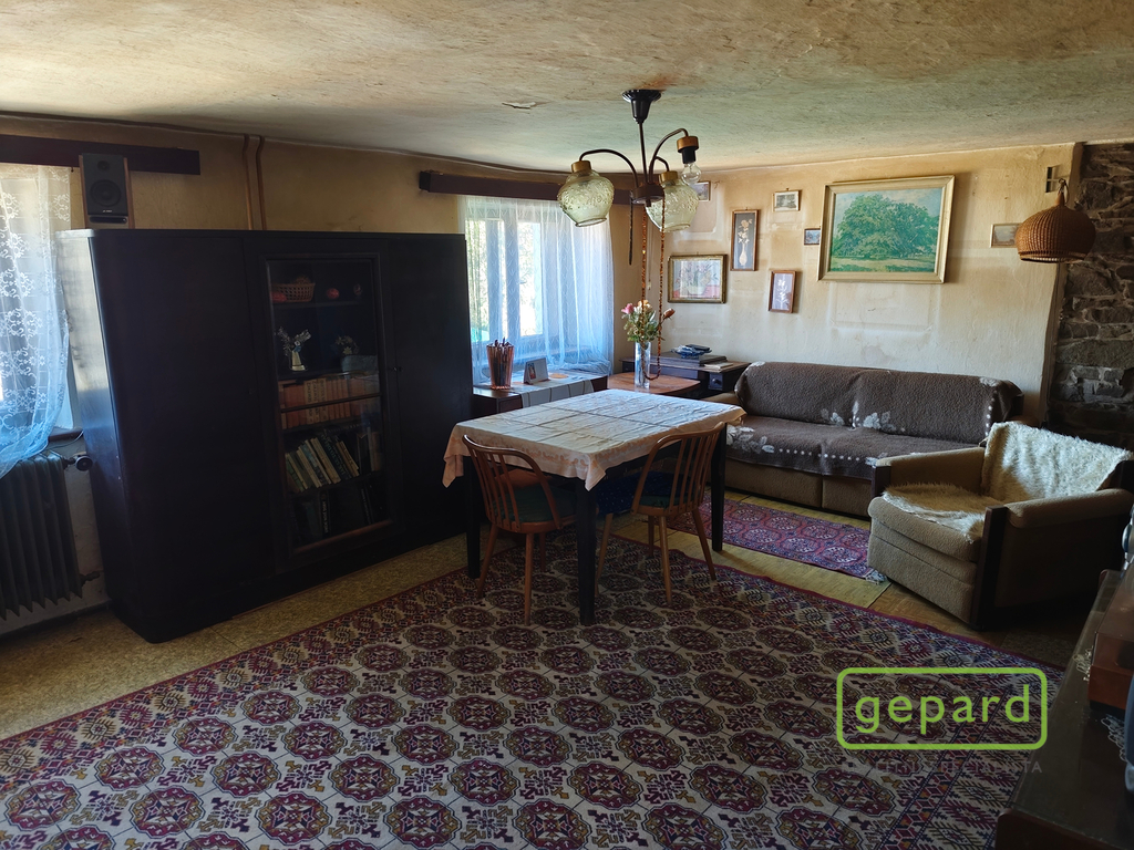Prodej domku se zahradou v obci Šebanov u Hořic na Šumavě. Celková plocha prodávaných pozemků má výměru 437m2, z čehož je zastavěná plocha této třípodlažní budovy 93m2. Ve 2.NP se nachází obytná část s obývacím pokojem, ložnicí, kuchyní, chodbou s výstupem do podkroví a koupelna s toaletou. Podkroví, půdní prostor, je vhodný k případné přestavbě s využitím balkonu. V 1.NP, suterénu, je umístěna integrovaná garáž o výměře 25m2, kotelna s uhelnou a další skladovací prostory. Elektřina zavedena, kanalizace jímka, zdrojem vody je vlastní studna. Vytápění je zajištěno kotlem na tuhá paliva a radiátory. Ohřev vody elektrickým boilerem. Nemovitost je svou polohou vhodná jak k trvalému bydlení tak i rekreaci. Osada Šebanov je součástí obce Hořice na Šumavě s dostatečnou občanskou vybaveností a leží poblíž hlavní trasy Český Krumlov - Lipno, Černá v Pošumaví. Vzdálenost do Hořic na Šumavě 2km, do Českého Krumlova 14km, na Lipno, Černá v Pošumaví 8km. V lokalitě je bohatá příroda a cyklostezky. Prohlédněte si prosím naší fotogalerii. Energetická třída PENB „G“ je uvedena z formálních důvodů dle zákona č. 103/2015 Sb., po obdržení průkazu energetické náročnosti budovy bude uvedena skutečná hodnota. Více informací na níže uvedeném telefonním čísle. Prohlídky po předchozí domluvě z kanceláře Český Krumlov.