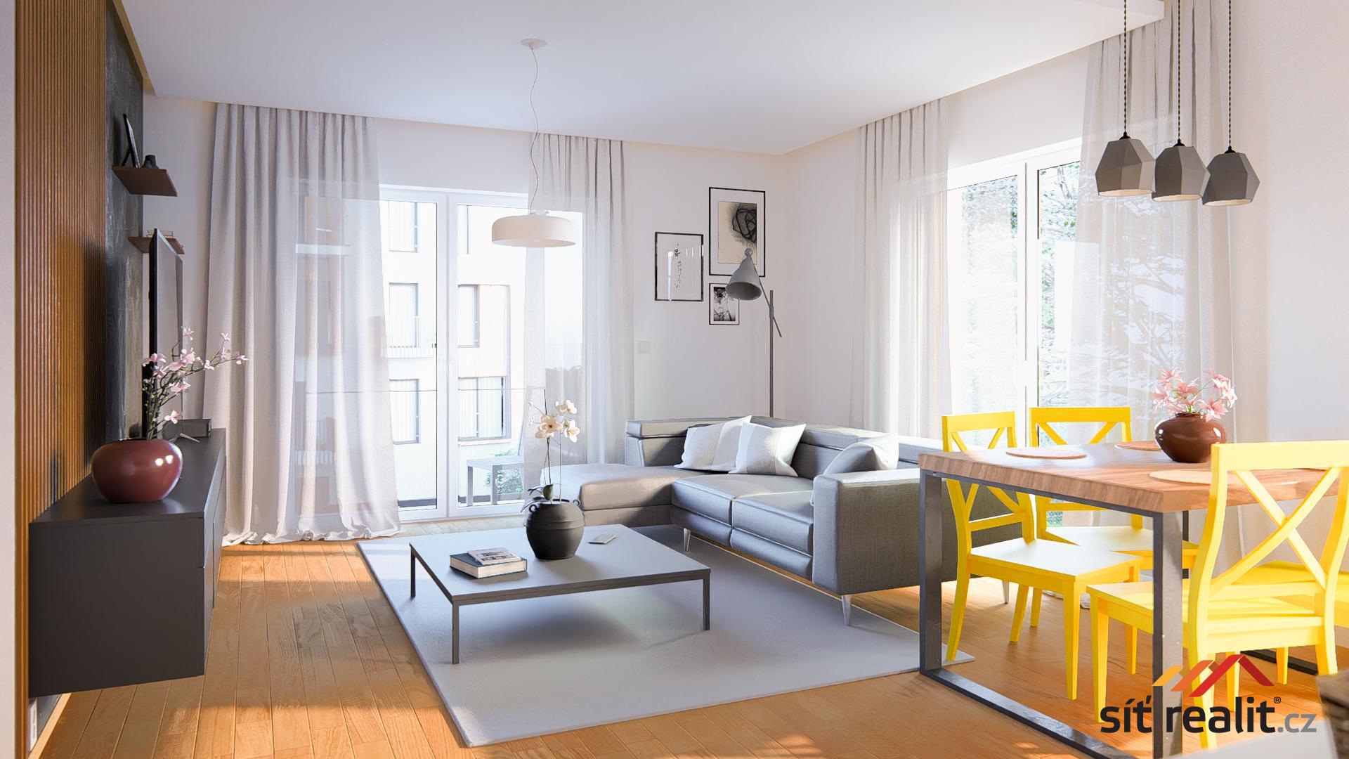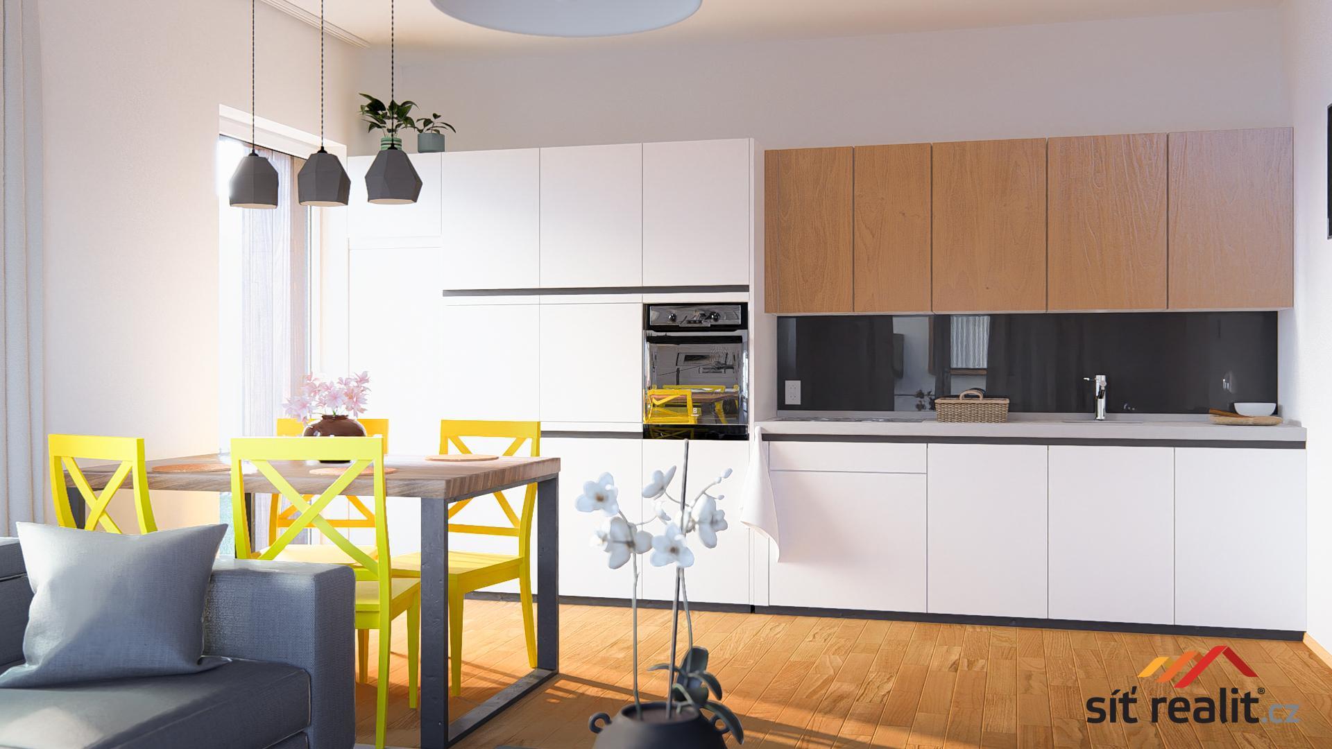 Novostavba bytu 2+kk, 58,35 m2 + balkon 4,34 m2, výtah, podlahové vytápění, komora