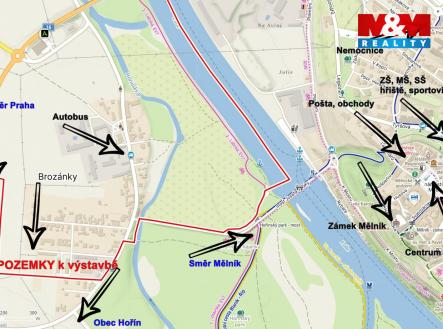 Nabízíme k prodeji rovinatý stavební pozemek o velikosti 1026 m², situovaný v klidné části obce Hořín–Brozánky, nedaleko Mělníka. Pozemek je součástí menšího rezidenčního projektu s devíti moderními rodinnými domy, který je koncipován s důrazem na soukromí, bezpečné prostředí a pohodové rodinné bydlení. Celý areál bude tvořit uzavřený komplex se soukromým vjezdem přes automatickou bránu a kompletním oplocením. Pozemek je plně zasíťovaný - elektřina i ostatní inženýrské sítě jsou již připraveny. Dokončení osvětlení a oplocení je plánováno do konce dubna. Dle územního plánu je zde možné postavit rodinný dům s jednou bytovou jednotkou, maximální zastavěnost činí 40 %. Centrum Mělníka je vzdáleno přibližně 3 minuty jízdy, nájezd na dálnici D8 asi 5 minut a do Prahy - Letňan za cca 25 minut. V Mělníku je veškerá občanská vybavenost, vlakové i autobusové spojení. Lokalita nabízí ideální spojení klidného bydlení s výbornou dostupností služeb i dopravy. Skvělá příležitost pro rodinné bydlení