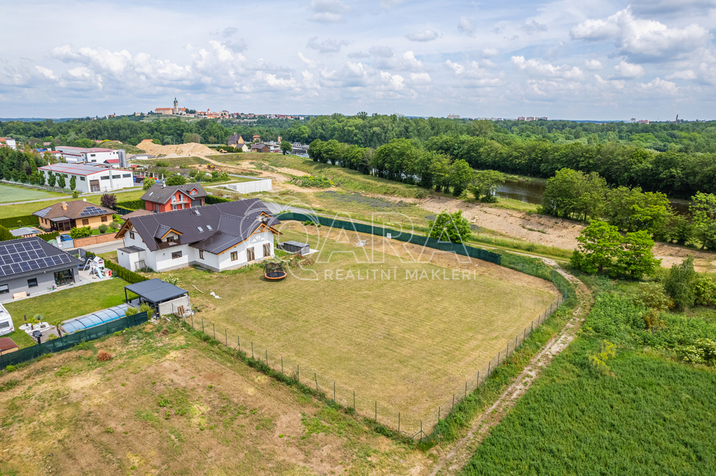 Malý projekt "Bílé Břehy": nabízím k prodeji stavební pozemek o velikosti 600m2 ke stavbě domu. Pozemek je umístěný doslova minutku od Mělníka, v obci Hořín a nachází v příjemné lokalitě poblíž řeky a nově vznikajícího sportovního přístavu Bílé Břehy. Pro dojezd do Prahy je pak klíčový nájezd na dálnici D8, který je pouhých 7 minut jízdy a dalších 30 minut do Letňan. Pro spojení vlakové a autobusové pak poslouží nádraží v Mělníku. Inženýrské sítě jsou stávající a jednání ohledně přípojek k pozemku a napojení na ně je již v procesu. Zároveň je podána žádost o stavební povolení. Cena pozemku včetně přivedení inženýrských sítí (voda-elektřina-kanalizace) k hranici pozemku, včetně žádosti o stavební povolení (dům typu bungalov, zastavěná plocha 190 m2) je 4.200.000,-- Kč V inzerci je použita vizualizace pro lepší představu možnosti umístění domu na pozemku. Pomůžeme i s případným financováním pozemku. Pro více informací mne neváhejte kontaktovat.