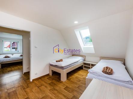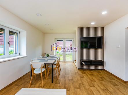 V zastoupení klienta nabízíme k prodeji byt 3kk v nové přístavbě domu na Horní Bečvě - lokalita Liščí. V domě se nachází dva byty, tento je v přístavbě domu, na levé straně fotografie (blíže ke komunikaci). Byt má podlahovou plochu 77m2, největším pokojem je obývací pokoj s kuchyňským koutem o výměře 25,6 m2. V přízemí se ještě nachází koupelna s toaletou. V patře jsou dvě ložnice. K bytu dále náleží sklepní kóje o velikosti 4,59m2 a terasa 34m2. Také dvě parkovací stání. Byt je vytápěn společným tepelným čerpadlem, odběr bytů je měřen samostatnými měřidly. Vodovod a kanalizace je provozována obcí, každý byt má samostatné měření spotřeby elektřiny. Na podlahách jsou plovoucí podlahy, v koupelně a přdsíni dlažba. Na oknech jsou instalovány venkovní rolety. Dům je zateplen. Bytová jednotka je vymezena dle zákona a zapsána na KN. Na domě není žádná zástava ani jiné omezení. V případě zájmu prohlášení vlastníka zašleme zájemcům o byt. Prohlídky po předchozí dohodě s makléřem