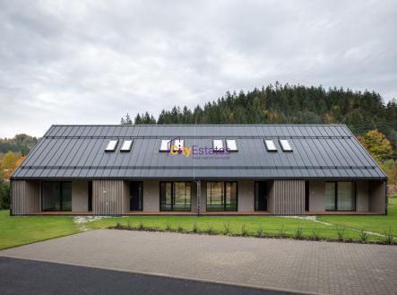 V zastoupení klienta nabízíme bytovou jednotku v domě, který je budován v rámci další etapy projektu bytových domů na Horní Bečvě - lokalita Liščí. Jedná se o dům se 4 byty 3kk se zahrádkou, stejný, jako již realizované domy A a B a prodané byty v dokončovaném domě C. Dům a byty jsou navrženy s cílem maximálně úsporného provozu, energetická třída B. Vytápění je zabezpečeno tepelným čerpadlem, topení je rozvedeno v podlahách bytu. V přízemí bytu naleznete za vstupem šatnu, ze které vejdete do hlavního obývacího prostoru s kuchyňským koutem. Na obývací pokoj navazuje terasa a malá zahrádka. V přízemí je toaleta, v patře dvě ložnice a koupelna s druhou toaletou. . Kuchyňský kout je vyprojektován na míru a je součástí vybavení bytu včetně spotřebičů. K bytu náleží dvě terasy - přední u vstupu 8,6m2 a zadní u zahrady 6,4m2 a dva sklady na terasách - 1,3 m2 na přední terase 3,2m2 na zadní terase. K bytu náleží zahrada 54m2 a parkovací místo. Celá lokalita je zasíťována optickým kabelem pro rychlé internetové spojení. Lokalita je nedaleko centra obce, kde naleznete školku, školu, lékaře, obchody a restauraci. Také je zde zastávka autobusu. Projekt získal statut malého developerského projektu u tří bankovních ústavů pro jednoduší vyřízení případné hypotéky. V současné době začala druhá etapa výstavby a s tím i rezervace bytů. První záloha ve výši 20% deseti dnů od podpisu smlouvy o smlouvě budoucí kupní snížená o rezervační poplatek, 20% po dokončení hrubé stavby, 20% po vydání kolaudačního rozhodnutí a po zapsání jednotek na KN doplatek ve výši 40% a podpis kupní smlouvy. V případě čerpání hypotéky bude splátkový kalendář upraven dle podmínek hypotéčního úvěru. Stavba rychle pokračuje a i silný déšt ukázal, že lokalita je bezpečná. Předpoklad kolaudace podzim 2026. Jedná se o velmi zajímavou investici a to s ohledem na budoucí velký nábor zaměstnaců v Rožnově pod Radhoštěm, což jistě bude mít dopad na cenu nemovitostí i výši nájmu. Při rezervaci bytů do 31. 12. 2025 sleva z ceny 150 000,- Kč.
