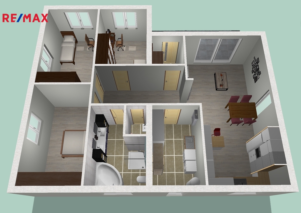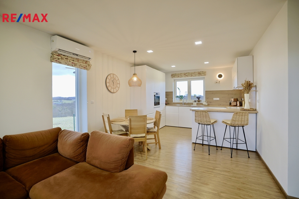 Ve výhradním zastoupení majitele nabízíme ke koupi novostavbu rodinného domu typu bungalov o velikosti 4+kk+technická místnost a podlahové ploše 109 m2. Dispozice pokojů a orientace dle přiloženého půdorysu. Dům je součástí pozemku o výměře 1013 m2, v nadmořské výšce 345 metrů. Stavba domu se nachází ve finální fázi, dokončení naplánováno na konec května 2026. V minulých letech byly dokončeny a předány novým majitelům již čtyři domy na vedlejších parcelách, viz foto. Stav nemovitosti při předání novému majiteli : - Anhydritová podlaha – tloušťka 6 cm, včetně podlahové krytiny vinyl + dlažba dle vizualizace - Podlahové vytápění vodní - Tepelné čerpadlo LG s hydroboxem - Krbová vložka bez tepelného výměníku - Obvodové zdivo Porotherm 30, příčkové zdivo Porotherm - Plastová okna – trojsklo, z interiéru barva bílá, z exteriéru barva antracitová - SDK podhledy včetně svítidel (bodová světla LED 15x15 cm) - Kuchyňská linka dle vizualizace - Koupelna a 2x wc včetně sanity, obkladů a dlažby dle vizualizace - Zateplení stropu – minerální vata 40 cm - Stěny vymalovány na bílo včetně vypínačů a zásuvek (ABB, bílá) - Hotová fasáda, silikonová, zrno 1.5 mm, barva bílá - Kolem domu obruba s kačírkem - Zámková dlažba na terase a před vstupem cca 20 m2 - Sjezd z hlavní komunikace v zámkové dlažbě na hranu pozemku viz projekt - Hrubé srovnání terénu bagrem - Plot za a kolem domu, pletivo výšky 150 cm, zelené poplastované - Střešní krytina plechová černá - ČOV USBF AT6 s přepadem do vsaku viz projekt Se souhlasem majitelů jednoho ze sousedních domů jsme použili pro představu fotky jejich interiéru. Lokalita je velmi klidná, s nádherným výhledem na dominantu Beskyd, Lysou horu. V těsném sousedství pozemku vede cyklotrasa a Naučná stezka, kousek od domu se nachází přírodní zajímavost Mořské oko a nedaleko (500 metrů) je Žermanická přehrada. Z centra Havířova i Frýdku-Místku je to k domu cca 8 km, z Českého Těšína 12 km. Cena obsahuje veškeré dokončovací práce a vybavení popsané výše, provizi i advokátní úschovu.