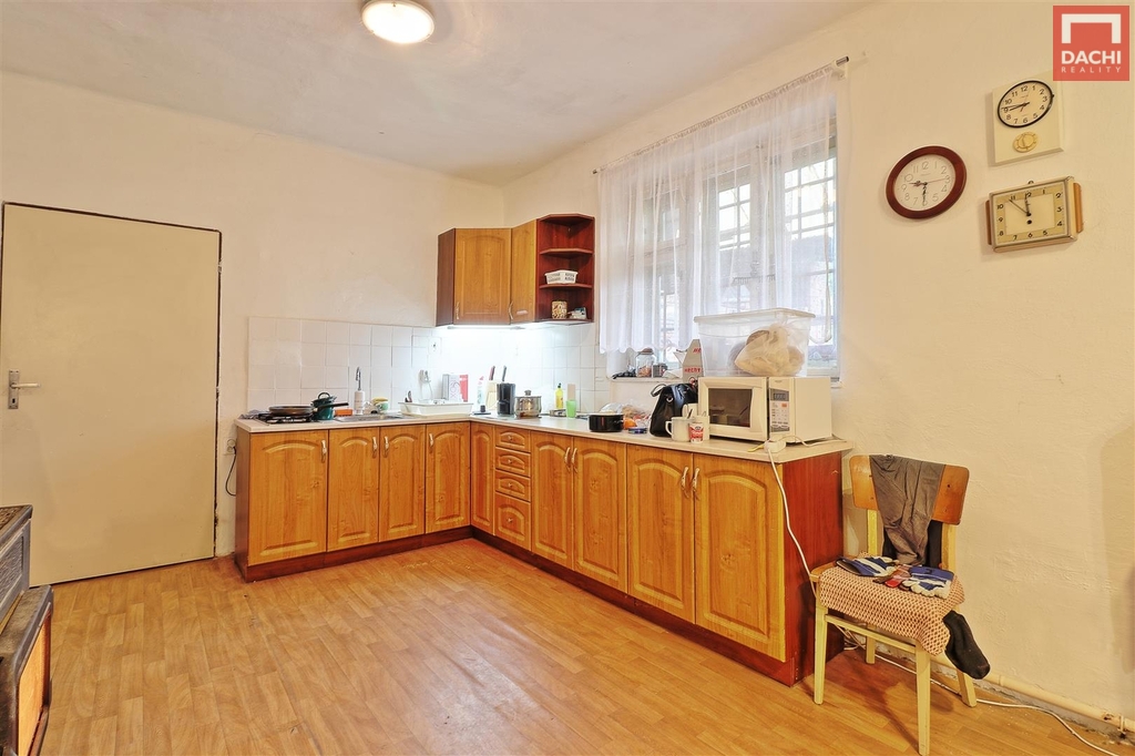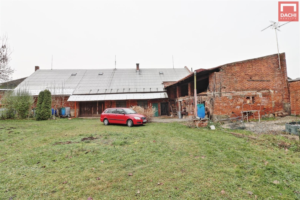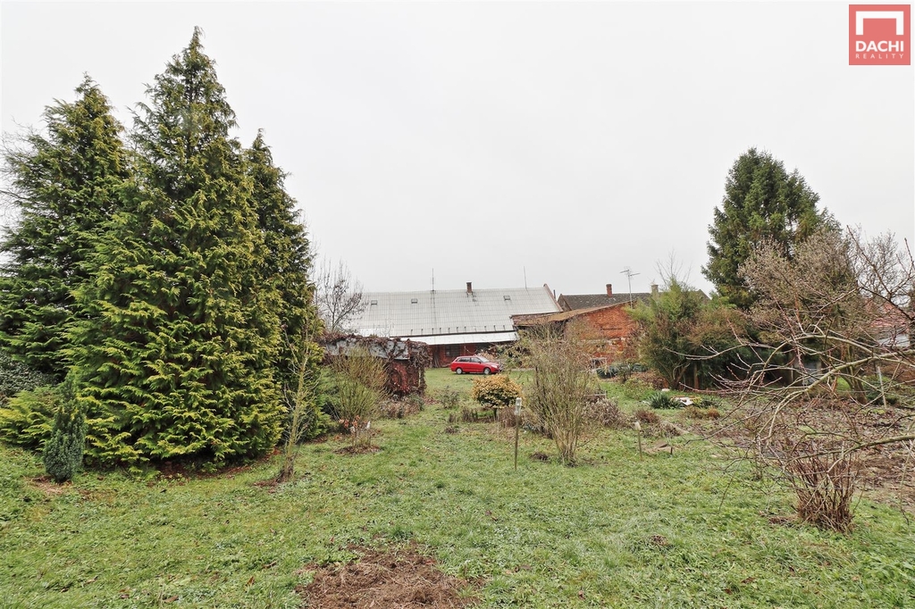 Nabízíme k prodeji řadový, jednopodlažní a částečně podsklepený, rodinný dům, který byl zemědělskou usedlostí. Nemovitost se skládá z bytové jednotky 3+kk, velké stodoly... nyní užívána i jako garáž, dílny a menších skladů. Je v původním, udržovaném, plně funkčním stavu, ovšem určená k rekonstrukci. Střešní krytina je plechová, část z eternitových šablon a část z PVC vlnovky. Podlahy jsou původní prkenné bez hydroizolace, betonové, PVC, keramická dlažba. Okna jsou dvojitá dřevěná, jednoduchá ocelová, dveře jsou původní dřevěné. Dům, ani střecha jsou nezateplené . Dům je napojen na všechny inženýrské sítě, el, plyn, obecní voda, kanalizace, vlastní studna. Na dvoře se nachází i zděná dílna, nepodsklepená, jednopodlažní se sedlovou střechou, do které již trochu zatéká. Vrata jsou dřevěná, okno dřevěné kastlové a ocelové jednoduché. V dílně nejsou inženýrské sítě. Pozemky jsou dlouhodobě využívány jako zahrada a jsou osázeny mnoha ovocnými ( jabloně, švestky) i okrasnými keři ( ibišek, rododendron, magnolie) i stromy. Nacházejí se zde i více než stoleté stromy ( jasan, ořech ) celkem cca 70 stromů a keřů. Především zahrada nabízí a poskytuje úžasné soukromí, možnost relaxace a klidu. Nemovitost není zatížena žádným věcným ani jiným břemenem, žádnými zápisy ani jinými omezeními vlastnického práva. Doporučujeme prohlídku.