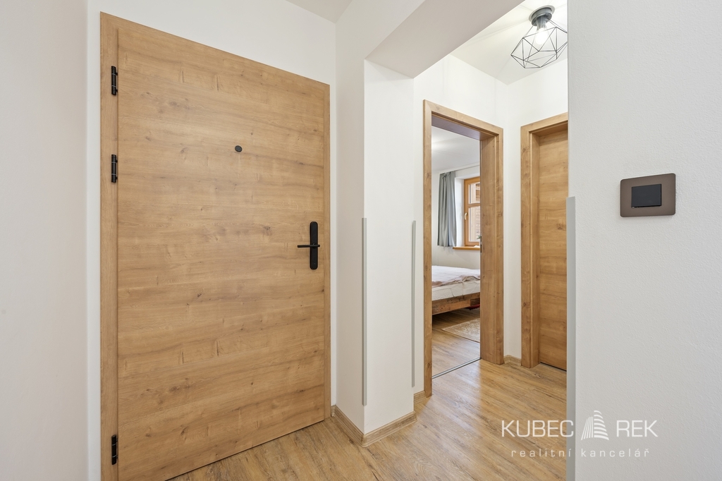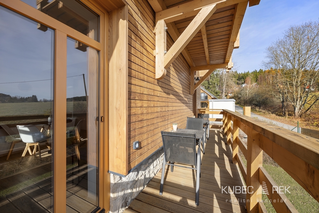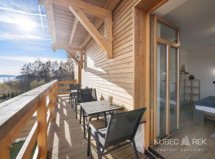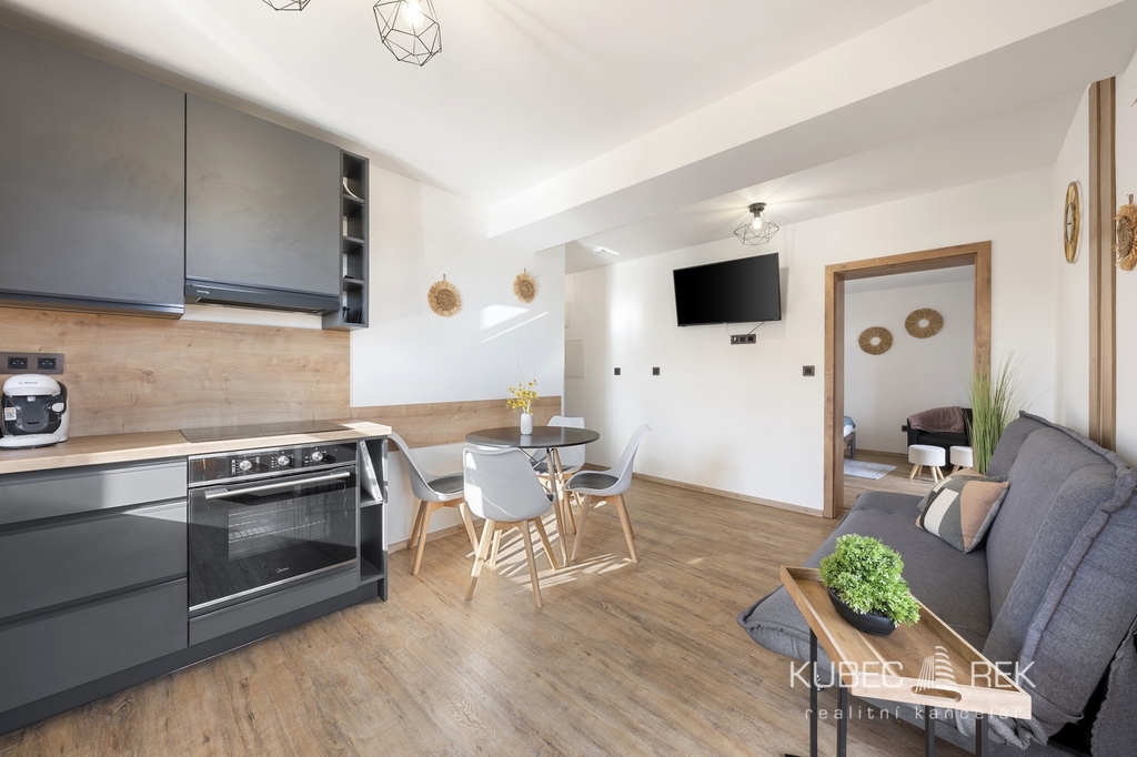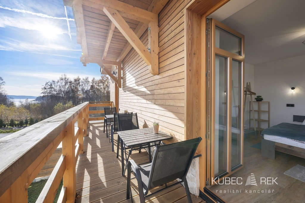 Nabízíme k prodeji nový a světlí byt 3+kk o užitné ploše 51 m² s prostorným balkónem o výměře 8 m², která se nachází v prvním patře kompletně zrekonstruovaného bytového domu na adrese Hůrka 39 v Horní Plané. Dům prošel zdařilou rekonstrukcí v roce 2022 a díky svému umístění nabízí krásný výhled směrem k Lipnu i do okolní šumavské krajiny. Byt je v současné době kompletně vybaven, přesně tak, jak je vidět na fotogalerii, a je připravený k okamžitému užívání. Stačí se pouze nastěhovat a začít bydlet nebo jej nadále úspěšně využívat jako apartmán pro krátkodobé pronájmy. Tato lokalita patří mezi nejvyhledávanější na Lipensku, což z nemovitosti činí nejen příjemné místo k rekreaci, ale také velmi zajímavou investiční příležitost. Dispozice bytu se skládá z předsíně, obýváku s kuchyní, pokoje, ložnice a koupelny s WC. Byt je vytápěn elektrokotlem, ohřev vody zajišťuje elektrický bojler. Roční náklady na elektřinu činí přibližně 19.000 Kč, což je na tuto dispozici mimořádně příznivé. Vytápění lze navíc pohodlně ovládat na dálku. Objekt je napojen na vlastní vrtanou studnu a odpad je sveden do ČOV. K bytu náleží zděný sklep, který poskytuje dostatek úložného prostoru a také vlastní parkovací stání. Velkým benefitem je rovněž venkovní bazén přímo u domu, který mohou využívat jak majitelé, tak případní nájemníci. Horní Planá je oblíbeným vstupním místem do oblasti Lipna a nabízí skvělé podmínky pro celoroční rekreaci. V okolí najdete oblíbené cyklostezky kolem přehrady, možnosti koupání, vodní sporty, zimní aktivity i nespočet turistických tras v nádherné šumavské přírodě. Je to místo, kde snadno zpomalíte a užijete si každý den naplno. Pokud hledáte rekreační byt připravený k užívání, příjemné místo pro trvalé bydlení nebo investiční apartmán v jedné z nejžádanějších lokalit Lipenska, neváhejte mě kontaktovat. Rád vám nemovitost osobně představím.