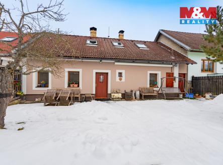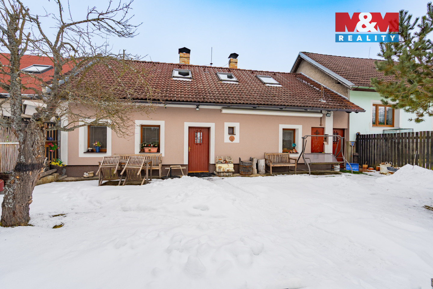 Nabízíme k prodeji zděný dům se dvěma oddělenými jednotkami (3+1 a 2+kk), vhodný jak pro vícegenerační bydlení, tak jako investiční příležitost k pronájmu se zajímavým výnosem. Před přibližně 10 lety proběhlo zateplení domu (12 cm, izolační vlastnosti odpovídají zhruba 22 cm běžného zateplení). Ve stejném období byly také obnoveny stropy. Vytápění zajišťuje elektrokotel s měděnými rozvody, doplněný o dvoje stylová lokální kamna. V kuchyních jsou instalovány průtokové ohřívače vody, k dispozici je rovněž bojler. Součástí nemovitosti je vlastní vrt o hloubce více než 20 m, který bez obtíží postačí i pro napuštění bazénu o objemu přibližně 30 m³. Na zahradě se nachází koupací jezírko o rozměrech přibližně 3 × 5 m, v nejhlubším místě 2 m, s pískovou filtrací. Součástí pozemku je také 13 ovocných stromů a další okrasné dřeviny. V ceně zůstává veškeré vybavení mimo kamna v obývacím pokoji a osobní věci majitelů. Pro více informací nás kontaktujte.