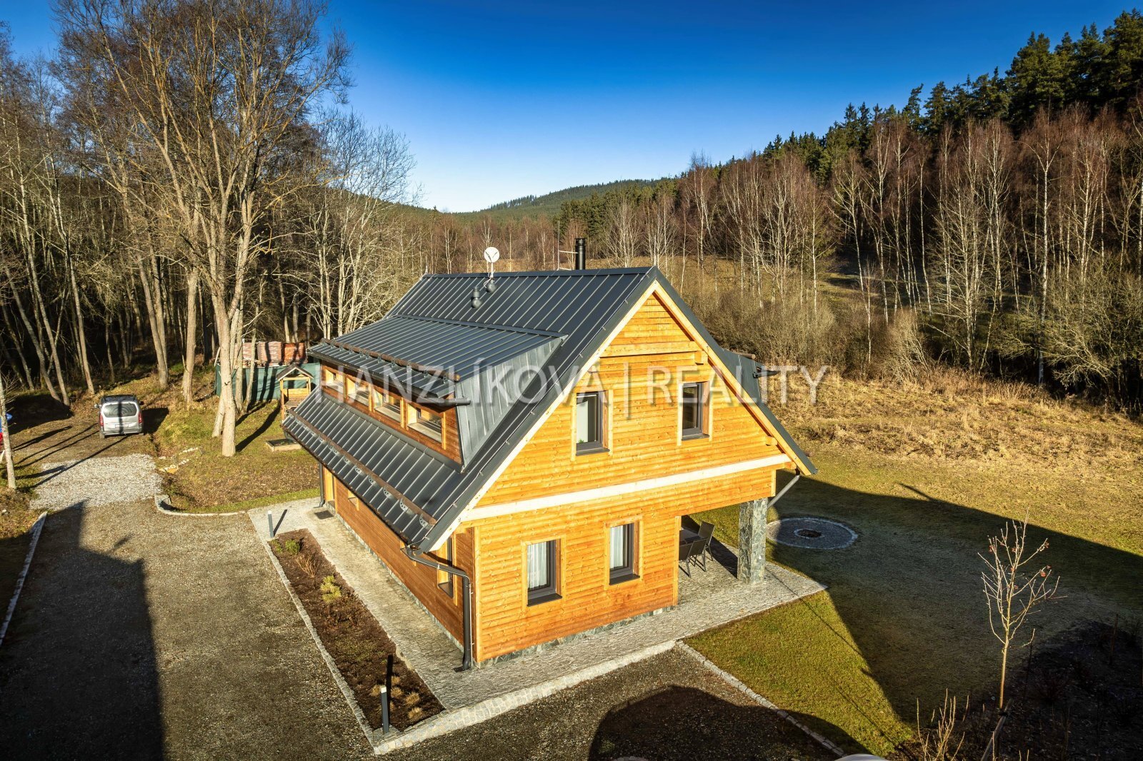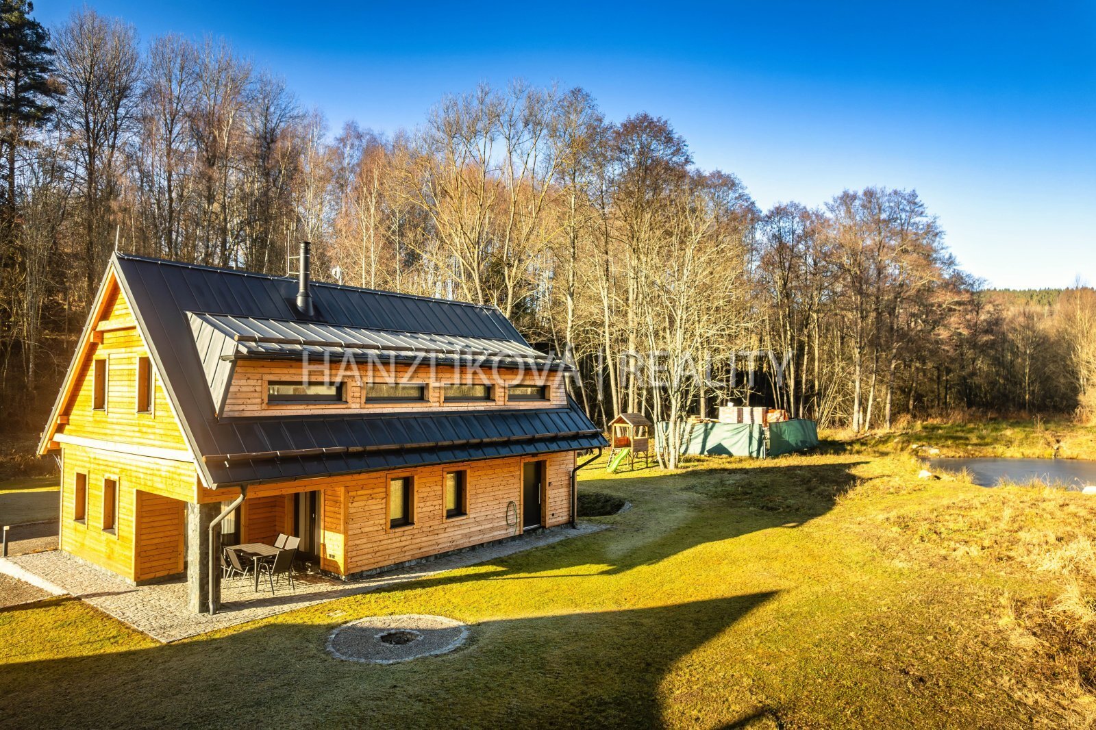 Hledáte místo, kde se snoubí klid šumavské přírody s možnosti aktivního odpočinku v blízkosti Lipenské přehrady? Nabízíme Vám jedinečný rekreační dům - hájenku v obci Pernek, jen pár minut od břehu Lipna. Dům je součástí komorního rekreačního areálu " Venkovské usedlosti Pernek" a byl zkolaudován v roce 2022. Dům stojí na vlastním pozemku o celkové výměře 1381 m2, disponuje užitnou plochou přes 156 m2 a je rozdělen na dvě obytná podlaží. V přízemí se nachází prostorná kuchyně s jídelnou a přímým vstupem na terasu, obývací pokoj s krbem, koupelna a technické zázemí. V podkroví najdete čtyři samostatné ložnice a další koupelnu s WC. Celkově nabízí pohodlné zázemí i pro větší rodinu či rekreační pronájmy. Dům je napojen na el. en. - má vlastní elektrokotel a bojler na ohřev vody, vytápění je podlahové, voda ze společné studny, každý dům má pak svou čističku pitné vody, odpad - septik na vyvážení. Objekt je vybaven moderním systémem vytápění, který lze ovládat pohodlně na dálku prostřednictvím mobilní aplikace. Díky tomu můžete topení zapnout či regulovat ještě před příjezdem a nastavit teplotu v každé místnosti zvlášť podle vlastních potřeb. Dům byl postaven z kvalitních materiálů a zůstává plně vybaven. Hlavní přednosti : - vlastní pozemek o výměře 1381 m2 - soukromá terasa s možností grilování a posezení - krbová vložka pro útulnou atmosféru v zimních měsících - kvalitní zateplení ( 15 cm minerální vaty) a plastová okna - vlastní elektroměr, elektrokotel a bojler, - moderní systém vytápění přes mobilní aplikaci, možnost regulace každé místnosti zvlášť - dům je kompletně vybaven ( viz fotografie) - 4 parkovací stání přímo u domu - společné zázemí areálu - dětské hřiště, upravené okolí Areál je zasazený do nedotčené přírody, obklopený hlubokými lesy a nabízí naprostý klid a soukromí - ideální prostředí pro odpočinek i rodinnou rekreaci. Hranice pozemku sousedí s chráněnou krajinou oblastní a je zde stavební uzávěra. Jedinečnou atmosféru dotváří malý potůček, který se vine podél pozemku a přináší do prostředí osvěžující nádech a kouzlo horské přírody. Šum vody i zeleně v okolí dělají z tohoto místa ideální útočiště pro odpočinek, rekreaci či rodinné zázemí. Provozní náklady se pohybují kolem 6-8 tis Kč měsíčně. Nemovitost je možné využívat celoročně - ať už jako rodinné rekreační zázemí nebo jako investici s možností pronájmu. Možnost zajištění přes agenturu včetně zajištění úklidu. Lokalita : Pernek je ideálním výchozím bodem pro letní koupání, cykloturistiku či zimní lyžování. V bezprostřední blízkosti se nachází Lipno nad Vltavou s kompletní infrastrukturou ( aquapark, ski areál, stezka korunami stromů, řada restaurací, marina).