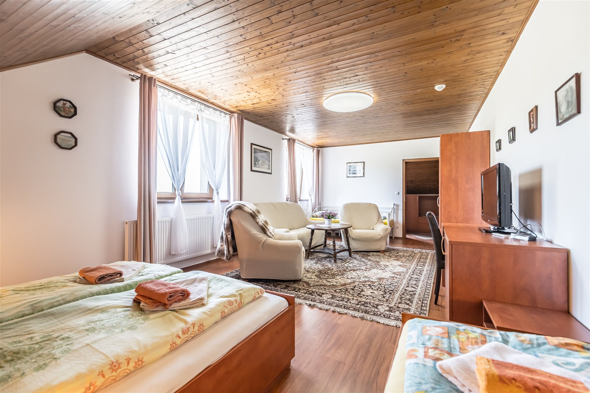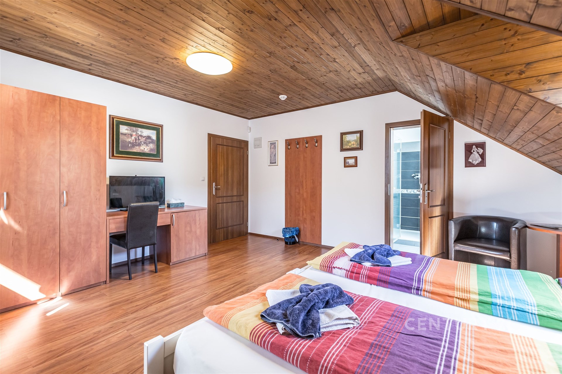 Nabízíme k prodeji výjimečnou nemovitost v obci Šejby, nacházející se v malebné části Jihočeského kraje. Tento exkluzivní objekt byl postaven v roce 2012 a nyní je nabízen za cenu 27 995 000 CZK. Jedná se o velkoryse dimenzovanou stavbu s obytnou plochou 700 m² a vedlejší budova o užitkové ploše 320 m², kde je zcela nová restaurace s vybavenou kuchyní a pozemek o rozloze 9060 m², což zaručuje dostatek soukromí a prostoru pro realizaci nejrůznějších komerčních aktivit. Nemovitost je ideální pro podnikání v hotelovém a pohostinském průmyslu, pořádání svateb, zahradních slavností, firemních pobytů, výjezdních zasedání a mnoho dalších zážitkových aktivit. Dispozice budovy je 11+1 místností, což poskytuje úžasnou flexibilitu při rozhodování o využití jednotlivých prostor. Nemovitost je také vybavena moderním vytápěním, které je řešeno tepelným čerpadlem rozvedeným do podlahového topení v 1. NP a do 2. NP do radiátorů. Pro zpříjemnění dlouhých zimních večerů si můžete zatopit v krbu. Je zde příprava na fotovoltaiku. WiFi v celé budově je samozřejmostí. Penzion tedy zahrnuje nezbytné prvky pro každého, kdo si přeje poskytovat služby v pohostinství. V 1. NP jsou dva luxusní trojlůžkové pokoje a ve 2. NP je pět dvojlůžkových pokojů a tři čtyřlůžkové. Nová restaurace, která patří k penzionu, zatím nebyla v provozu, čeká jen na vás, jakmile ji pro hosty otevřete. S dobrým kuchařem věřím, že na klientelu dlouho čekat nebudete. Sousedé z Rakouska si na českou kuchyni potrpí a rádi vás za svůj gastronomický zážitek vřele odmění. Další výhody této nemovitosti zahrnují dvě velké garáže a další venkovní stání, což je ideální pro hosty nebo zaměstnance. Voda je zajišťována vlastní studnou, odpadní vody jsou řešeny žumpou o velikosti 20 m3, což podtrhuje samostatnost a udržitelnost objektu. Stav objektu je hodnocen jako vynikající, díky čemuž není potřeba žádných dalších investic do rekonstrukcí nebo úprav. Komerční nemovitost je ihned volná k nastěhování a připravena na zahájení provozu bez jakýchkoliv odkladů. Nemovitost je také optimalizovaná pro setkávání, nabízí i recepci. Koupi nemovitosti lze financovat hypotečním úvěrem. Společenská místnost, krb a bar jsou obloženy z bílého mramoru dovezeného z ostrova Brač. Tato jedinečná nemovitost se nachází v klidné oblasti s malebným okolím v srdci Novohradských hor, které je jako stvořené pro relaxační, ale i sportovní aktivity, což dokazují stovky kilometrů cyklostezek, čímž výrazně zvyšuje atraktivitu pro potenciální klientelu. Pouhý 1 kilometr odsud jsou hranice sousedního Rakouska a 15 kilometrů solné lázně Gmünd a nespočet supermarketů, kde jsou dostupné kvalitní potraviny. Pokud hledáte prostor, kde můžete realizovat své podnikatelské sny s přidanou hodnotou skvělé lokality a kvalitních služeb, tato nemovitost v obci Šejby, je tou pravou volbou pro vaše plány.