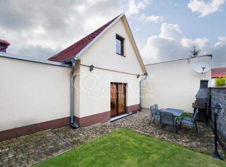 Nabízím k prodeji menší domek s útulným a soukromým dvorkem jako zajímavou alternativu k bydlení v bytě v Praze. Původní dům byl postaven ve 40. letech, ale prošel rozsáhlou rekonstrukcí dokončenou v roce 2010. V přízemí se nachází obývací pokoj, který má přímý vstup na zahradu. Do ulice je orientována kuchyň s jídelnou a schodištěm vedoucím do druhého podlaží. Z předsíně je přístupná koupelna s vanou a toaletou. V horním patře jsou dvě samostatné ložnice a toaleta s umyvadlem. Ze zahrady se jde do samostatného zděného domku, který je nyní upraven jako technické zázemí pro dům a rozdělen na dvě místnosti. Jedna je využívána jako úložný prostor a ve druhé je plynový kotel, který je zdrojem tepla a teplé vody pro oba domy, a toaleta. Za dveřmi je přípojka pro pračku. Dvorek nabízí naprosté soukromí a kombinuje zpevněné plochy a zeleň. Je orientován na východ a dá se z něj vytvořit zelená oáza navazující na obytný prostor. Přízemí domu je vytápěno podlahovým topením, v podkroví a menším domku jsou radiátory. Na podlahách jsou dlažby nebo plovoucí podlahy, okna jsou dřevěná Eurookna. Dům je připojen na obecní vodovod i kanalizaci. Měsíční náklady jsou cca 2500,- plyn (vytápění a ohřev vody), 1500,- elektřina a 600,- voda. V Horoměřicích je kompletní základní občanská vybavenost jako obecní policie, úřad, pošta, lékaři, potraviny, mateřská a základní škola. Metro A Bořislavka 9 min a Nádraží Podbaba 11 min autobusem.