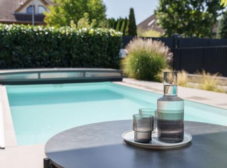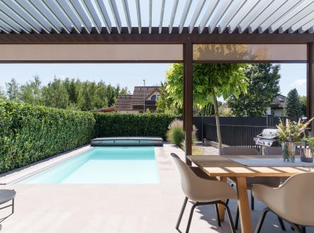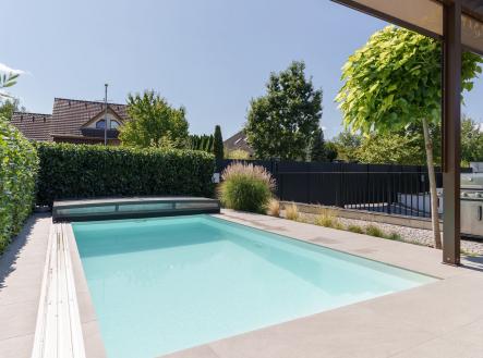 V exkluzivním zastoupení nabízíme nadstandardně vybavenou novostavbu o dispozici 4+kk, s užitnou plochou 186 m², zahradou 356 m² a slunnou terasou s bioklimatickou pergolou se screenovými zástěnami a vyhřívaným bazénem se slanou vodou. Dům disponuje vstupní halou, třemi ložnicemi a vzdušným obývacím pokojem s kuchyňskou linkou značky Schüller vybavenou spotřebiči Siemens a přímým vstupem na terasu. K dispozici jsou dvě koupelny kompletně vybavené sanitární technikou a nábytkem Laufen (vana i sprchový kout) a praktická technická místnost. Ve spodní části domu se nachází prostorná dvojgaráž s podlahovým vytápěním a dostatek úložného prostoru, další dvě parkovací stání jsou před garáží. Zahrada je vybavena automatickým zavlažovacím systémem a nabízí nerušený výhled do zeleně. K nadstandardnímu vybavení patří například: - integrované podlahové vytápění (včetně garáže) - klimatizace a rekuperace - předokenní venkovní žaluzie - bioklimatická pergola se screenovými zástěnami - inteligentní ovládání domu a zahrady (včetně zavlažování) - hliníková okna s trojsklem - bezrámové dveře JAP výšky 270 cm - stropy vysoké 3 m - dřevěné podlahy, nábytek na míru a designové stěrky Němec - ambientní osvětlení - zabezpečovací systém a videotelefon Energetická náročnost budovy je “A”, kolaudace proběhla v dubnu 2023. Lokalita je vyhledávaná pro své klidné prostředí a dostatek zeleně. V těsné blízkosti se nachází přírodní rezervace Cyrilov a Klánovický les, které nabízejí ideální zázemí pro rodinné bydlení a aktivní odpočinek. Pro více informací nebo sjednání prohlídky mě neváhejte kontaktovat.