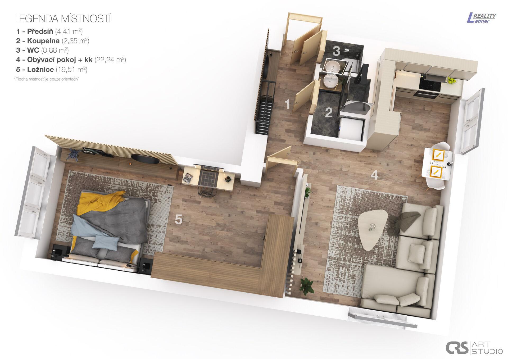 Nabízíme Vám k pronájmu krásný a prostorný byt po kompletní rekonstrukci, v klidné a velmi žádané lokalitě, v ulici 1. Máje v Hořovicích. Tento byt se nachází ve zvýšeném přízemí dvoupatrového cihlového domu bez výtahu, s výbornou obč. vybaveností v místě. Byt je po nákladné kompletní rekonstrukci. Celková plocha bytu je 54,49 m2 vč. sklepa, náležícího k bytu. Byt má k dispozici: předsíň, prostorný ob. pokoj s kuch. koutem 22,24 m2, ložnice 19,51m2, koupelna se sprchovým koutem, samostatná toaleta s WC Geberit. V bytě po nákladné a velmi zdařilé rekonstrukci jsou: plastová okna vč. okenních rolet, kvalitní kuch. linka vč. spotřebičů (el. horkovzdušná trouba, mikrovlnná trouba, digestoř, myčka, indukční varná deska, vestavná kombinovaná chladnička s mrazákem), v obývacím pokoji zánovní sedací souprava, konferenční stolek, obývací stěna, TV. V ložnici velká šatní skříň, manželská postel, stolek. Dále sádrokartonové podhledy, převážně úsporné LED osvětlení, podlahy v celém bytě velkoformátová luxusní dlažba, rozvody el. v mědi, novější jističe, zděné jádro, v koupelně a na WC luxusní designové obklady, voda a dopady v plastu, interiérové dveře vč. zárubní, vytápění zajišťují infrapanely, možnost internetu a kabelové TV. Byt se nabízí vybavený dle foto. K bytu náleží vlastní sklep EPNB ve třídě D. Majitel si vyhrazuje právo vybrat si nájemce na základě vlastních kritérií. V případě zájmu je zapotřebí uhradit první nájemné, vratnou kauci a provizi za zprostředkování. Možnost parkovaní před domem, občanská vybavenost v místě.
