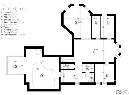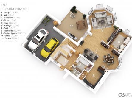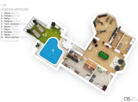 Rodinný dům 6+1 Hořovice, vnitřní bazén, sauna, posilovna, dvougaráž, 495 m2 plochy+1070 m2 pozemek