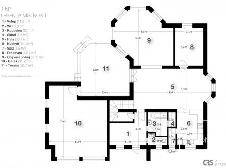 Na prodej rodinný dům v Hořovicích v krásné rezidenční čtvrti v ulici Lipová 1433/11 s dispozicí 6+1, dvougaráží, terasou, vnitřním bazénem, posilovnou, saunou a krásnou udržovanou zahradou. Obytná plocha domu je 275 m2 + užitná plocha je 220 m2 a stojí na pozemku 1070 m2. Jedná se o prodej těchto nemovitých věci: Rodinný dům č.p. 1433/11 a pozemek parc. č. 92/1; 92/10; 92/11 v obci Hořovice, okres Beroun, katastrální území Velká Víska. Rodinný dům je samostatný objekt. Má 2 nadzemní podlaží a 1 částečně podzemní podlaží. V domě je půda. Dům je postaven částečně z cihlové konstrukce a částečně z tvárnic. Základy jsou betonové izolované. Tloušťka obvodové konstrukce činí 36 cm + zateplení z polystyrenu. Stropy jsou železobetonové montované, střecha je valbová, krytinu tvoří betonová taška a klempířské prvky jsou měděné a plechové. Vnější omítky jsou latexové. Měsíční náklady na kompletní provoz domu činé díky kvalitnímu zateplení, instalaci tepelného čerpadla a fotovoltaické elektrárny pouhých 6.000,- Kč / měs. Dům byl postaven v roce 1998. V roce 2001 proběhla rekonstrukce zateplení pláště – celková. V roce 2010 byla provedena instalace klimatizace a trávníkové závlahy. V roce 2022 byl vybudován nový zdroj vytápění tepelným čerpadlem, přičemž byla zachována možnost vytápění plynovým kotlem. Dále byla instalována fotovoltaická elektrárna 9,9 kWp s Aku 10,2 kWh a Wallbox 22 kW na nabíjení elektromobilu v garáži. Stav objektu lze charakterizovat jako velmi dobrý bez vad a vždy perfektně udržovaný. Rodinný dům byl postaven z velmi kvalitních materiálů a je ve velmi zachovalém stavu. Podlahy, dveře, obložky, kuchyně jsou z masivního dřeva. Kuchyňská deska je žulová, stejně jako radiátory a parapety v obývacím pokoji. Vybavení horní koupelny je z imitace kamene. Dům má nadstandardní příslušenství – vnitřní bazén s vířivkou, sauna, posilovna, tělocvična. Dům má přípravu na možnost rozdělení na 2 bytové jednotky v každém patře jednu. Ve městě je kompletní občanská vybavenost vč. nemocnice. Hořovice jsou umístěny u dálnice D5 s dostupností 20 km do Berouna, 45 km do Plzně a 42 km od metra Zličín v Praze.