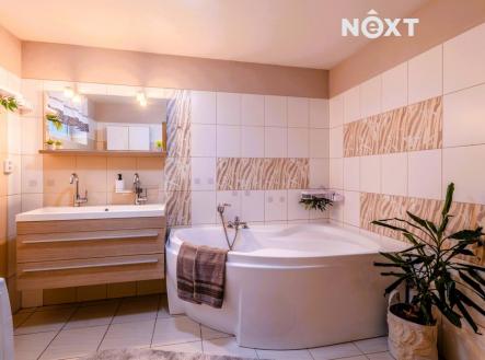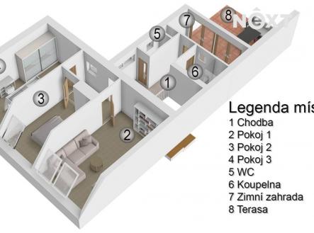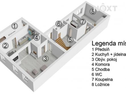 Všem, kteří hledají příjemné bydlení nedaleko od Brna, exkluzivně nabízíme ke koupi řadový rodinný dům v klidné části obce Hostěrádky-Rešov. Přízemní dům s obytným podkrovím prošel v roce 2013 celkovou rekonstrukcí, která znamenala kompletní přestavbu domu. Při pohledu z ulice se dům jeví jako malý, ale pod zdáním malého domku se skrývá rozlehlý obytný prostor s dispozicí 5+kk, který kromě dostatku místa nabídne navíc i zimní zahradu, terasu a venkovní bazén. Vstup do domu je přes vstupní předsíň (8,56 m2), která tvoří spojnici s nádvořím. V přízemí najdete kuchyňský kout (6,5m2) s jídelnou (9,10 m2), na ni navazující průchozí obývací pokoj (25,97 m2), technickou místnost (2,25 m2), chodbu (13,06 m2) se vstupem do ložnice (14,9 m2), na samostatnou toaletu (1,53 m2), vstup do koupelny (6,41 m2) s vanou a dvojumyvadlem a východ přímo na dvůr. Po schodišti z chodby je možné sejít do menšího sklepu a směrem nahoru vyjít do podkroví, kde se nachází kromě samostatné toalety (1,53 m2) a koupelny (3,82 m2) 3 samostatné pokoje (17,5 m2, 21,97 m2 a 12,68 m2). V jednom z pokojů jsou připraveny instalace k zařízení kuchyně. Protože pozemek za domem je svažitý, dispozice domu tuto terénní nerovnost využila a umožňuje vyjít po rovině z horního podlaží přes zimní zahradu s terasou přímo na malou zahrádku, kde Vás mile překvapí venkovní bazén. Na úrovni dvora je k dispozici úložný prostor umístěný pod horní terasou. Ovšem největším bonusem je nově instalované tepelné čerpadlo, které zajišťuje ústřední vytápění celého domu a podle potřeby spolu s el. bojlerem i ohřev užitkové vody. Další alternativou vytápění je výkonná krbová vložka na dřevo v obývacím pokoji. Dům je napojen na obecní vodovod, kanalizaci a elektřinu. Nově je k domu přiveden optický kabel, dokončení jeho instalace proběhne v nejbližší době. S parkováním si rozhodně starost dělat nemusíte, jednak je možné parkovat na vydlážděné ploše těsně u domu a nebo na parkovacích místech na obecním pozemku přes cestu přímo před domem. Umístění obce nabízí nejen dobrou dostupnost do Brna (vlak, autobus), ale přímo v obci se nachází MŠ, obchod, 2 restaurace. ZŠ, lékař a ostatní najdete v nedalekých Šaraticích. Dle průkazu energetické náročnosti je nemovitost vedena ve třídě C. Pouze u nás vám zajistíme moderní financování až na 30 let, bez ohledu na věk a prokazování příjmů, či nutnosti předkládat daňové přiznání (u podnikatelů). Zeptejte se nás a bydlete chytře! Při osobní prohlídce nejlépe posoudíte, zda je tento dům vhodný právě pro Vaše nové bydlení. Pro více informací nebo sjednání prohlídky kontaktujte realitního makléře. Pro komunikaci uvádějte evidenční číslo zakázky N116170.