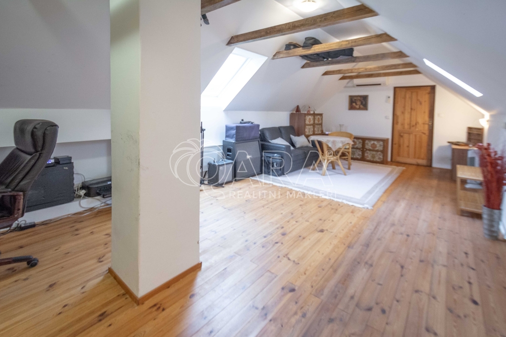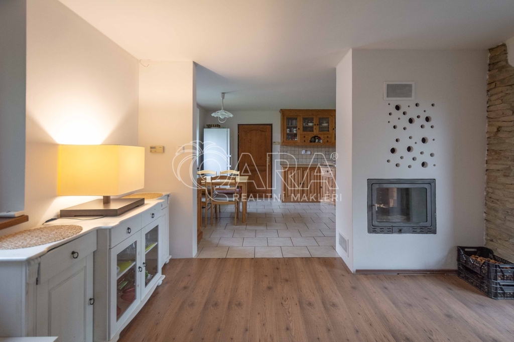 Nabízím k prodeji rodinný dům 5+kk s garáží a zahradou, na klidném místě v centru obce Hostín. Bydlete v obci, která byla v roce 2017 vyhlášena Vesnicí roku, kdy získala Zelenou stuhu za péči o zeleň a životní prostředí. Dispozice domu na konci slepé ulice, který v roce 2012 prošel zdařilou rekonstrukcí. V přízemí, kde zůstane většina vybavení: vstupní chodba se šatnou, obývací pokoj spojený s kuchyní a vstupem do zadní zahrady se vzrostlými stromy, technická místnost, ložnice, koupelna s vanou a samostatné WC. V horním patře tři místnosti, tedy dva pokoje a pracovna se skladem, kde se dá udělat další obytná místnost. Venku sklad a garáž. • Celková velikost pozemku 919 m2. • Zastavěná plocha 199 m2. • Přední a zadní zahrada o celkové velikosti 720 m2. • Na zahradě ovocné stromy a květiny. • Vytápění tepelným čerpadlem Daikin (vzduch /vzduch), v přízemí podlahové topení a krb v obývacím pokoji. • Napojeno na elektřinu, obecní vodovod a septik. • V obci oblíbená hospůdka, volnočasový areál s rybníkem, dětské a tenisové hřiště, lesy plné hub. Vhodné k trvalému bydlení či rekreaci. Na nemovitosti nevázne žádné zástavní právo, ani jiná překážka rychlého prodeje. Možnost financování hypotečním úvěrem, se kterým Vám rádi pomůžeme. Více informací na níže uvedeném kontaktu.