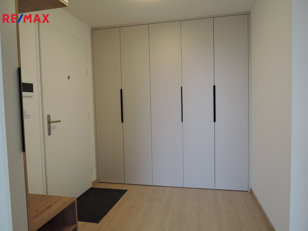 K pronájmu nabízíme byt v právě dokončené moderní novostavbě bytového domu s výtahem. Byt o dispozici 3+kk, podlahové ploše 67 m2, s dvěma balkony, garážovým stáním a sklepní kójí se nachází přímo v centru města Hostivice. Byt je umístěn ve 4. NP ze čtyř a skládá se z obývacího pokoje s kuch. koutem (23 m2) - první balkon (3 m2), ložnice (12 m2), pokoje (8 m2) - druhý balkon (3 m2), koupelny s vanou (5 m2), odděleného WC (2 m2) a předsíně (13 m2). Byt je vybaven novou kuchyňskou linkou na míru s vestavnými spotřebiči BOSCH (myčka, trouba s funkcí páry, sklokeramická varná deska, digestoř, lednice, mrazák). V ložnici a předsíni jsou prostorné vestavné skříně a úložné prostory. Bytová jednotka je dále vybavena klimatizací, podlahovým topením a předokenními roletami na elektrický pohon. PENB je B. V domě je výtah propojující nadzemní podlaží se suterénem, kde je umístěno garážové stání a sklep. K dispozici je kočárkárna. Bytový komplex se nachází v atraktivní lokalitě centra města Hostivice, v pěší vzdálenosti jsou obchody, restaurace, školy (mateřská a základní či základní umělecká škola, gymnázium), lékařská zařízení, pošta, lékárny, kavárny a další infrastruktura. Lokalita nabízí výborné dopravní spojení s hlavním městem, a to zejména díky vlakovému nádraží. K odpočinku lze využít okolní přírodu – Přírodní památka Hostivické rybníky. Preferujeme nájemce bez domácích mazlíčků, dlouhodobý pronájem. Počátek nájmu dle dohody. Měsíční nájemné je 30 000,-Kč plus poplatky dle spotřeby (byt je nový, čekáme na předpis záloh), kauce 75 000,-Kč, provize 15 000,-Kč plus DPH.