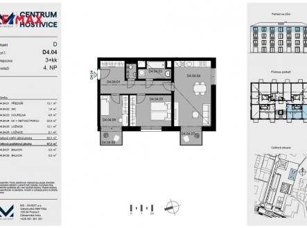 Byt 3+kk, 67 m2, v novostavbě s garážovým stáním, sklepem a dvěma balkony v centru města Hostivice.
