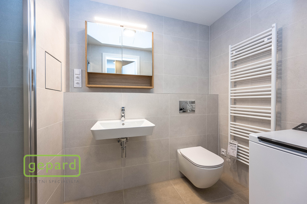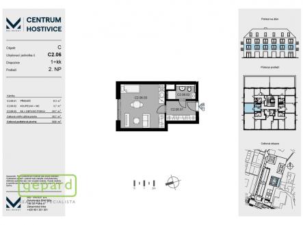 Gepard Reality nabízí k dlouhodobému pronájmu novostavbu v centru Hostivic o dispozici 1+kk a celkové výměře podlahové plochy 32,6m2. Ubytovací jednotka umístěná ve 2NP je vybavena novou kuchyňskou linkou na míru s vestavnými spotřebiči, automatickou pračkou, podlahovým vytápěním, předokenními žaluziemi na elektrický pohon a prostornou vestavnou skříní umístěnou v předsíni. Součástí pronájmu je sklepní kóje v suterénu bytového domu. K dispozici obyvatelům domu je také kočárkárna. Majitel preferuje nájemce nekuřáka bez domácích mazlíčků. Na začátku pronájmu se kromě nájemného (17.500,- Kč) + poplatky (3.500,- Kč) za první měsíc hradí také kauce ve výši 21tis. Kč a provize RK taktéž ve výši 21tis. Kč.